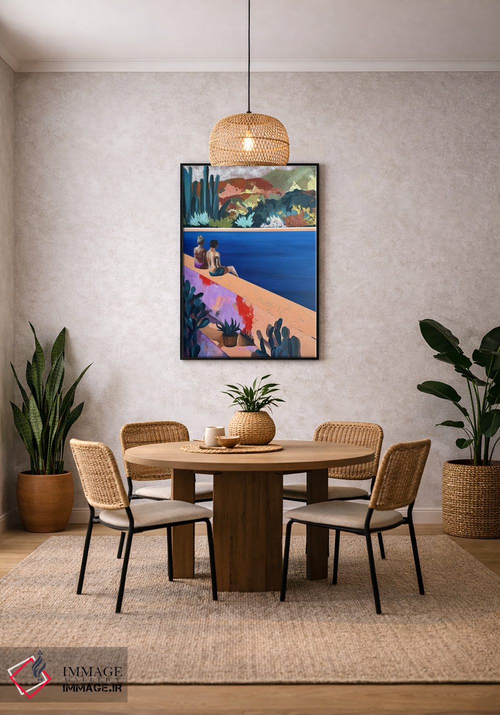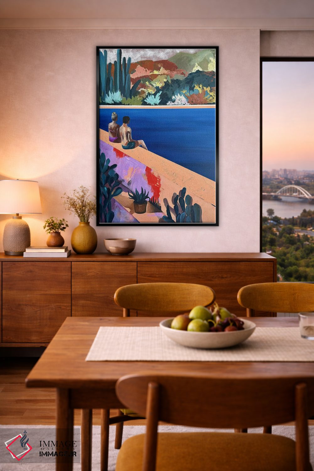این اثر با عنوان «منظره در ساعت ۶: ۴۵ عصر» اثرِ «کسنیا رای» فضا را روایتدارتر و زندهتر کند؛ برای فضای پذیرایی انتخابی خوشسلیقه است. فضا را شلوغ نمیکند؛ فقط روایت اضافه میکند.