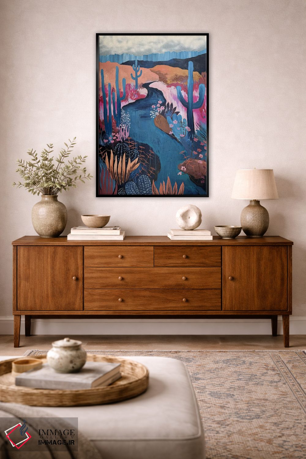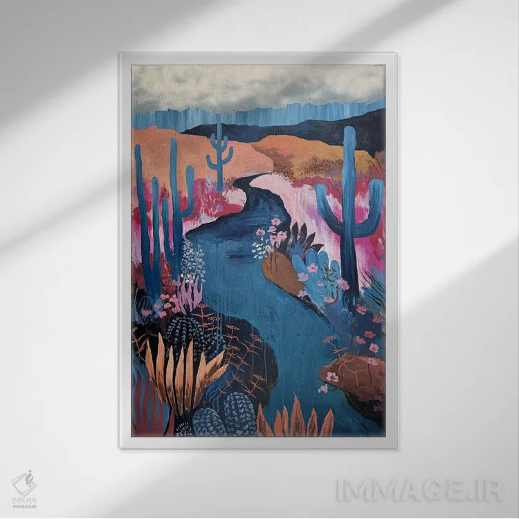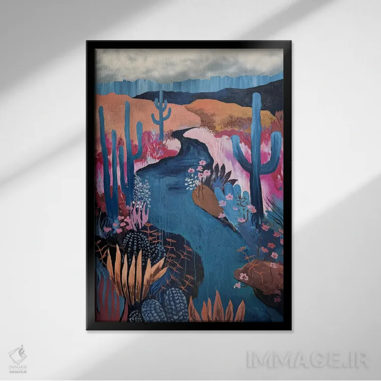 براساس پالت ترکیبی اثر، قاب تیک گرم (چوبی) پیشنهاد اول است و مشکی مات (فریم متوسط) مکمل. برای سفارشهای پروژهای با ابعاد و قابهای اختصاصی با ایماژ در تماس باشید.