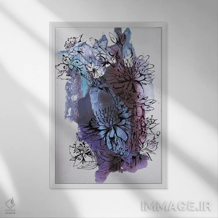تابلو انتزاعی گل ها اثر کاترینا بورتسووا - نمای قاب‌دار سفید