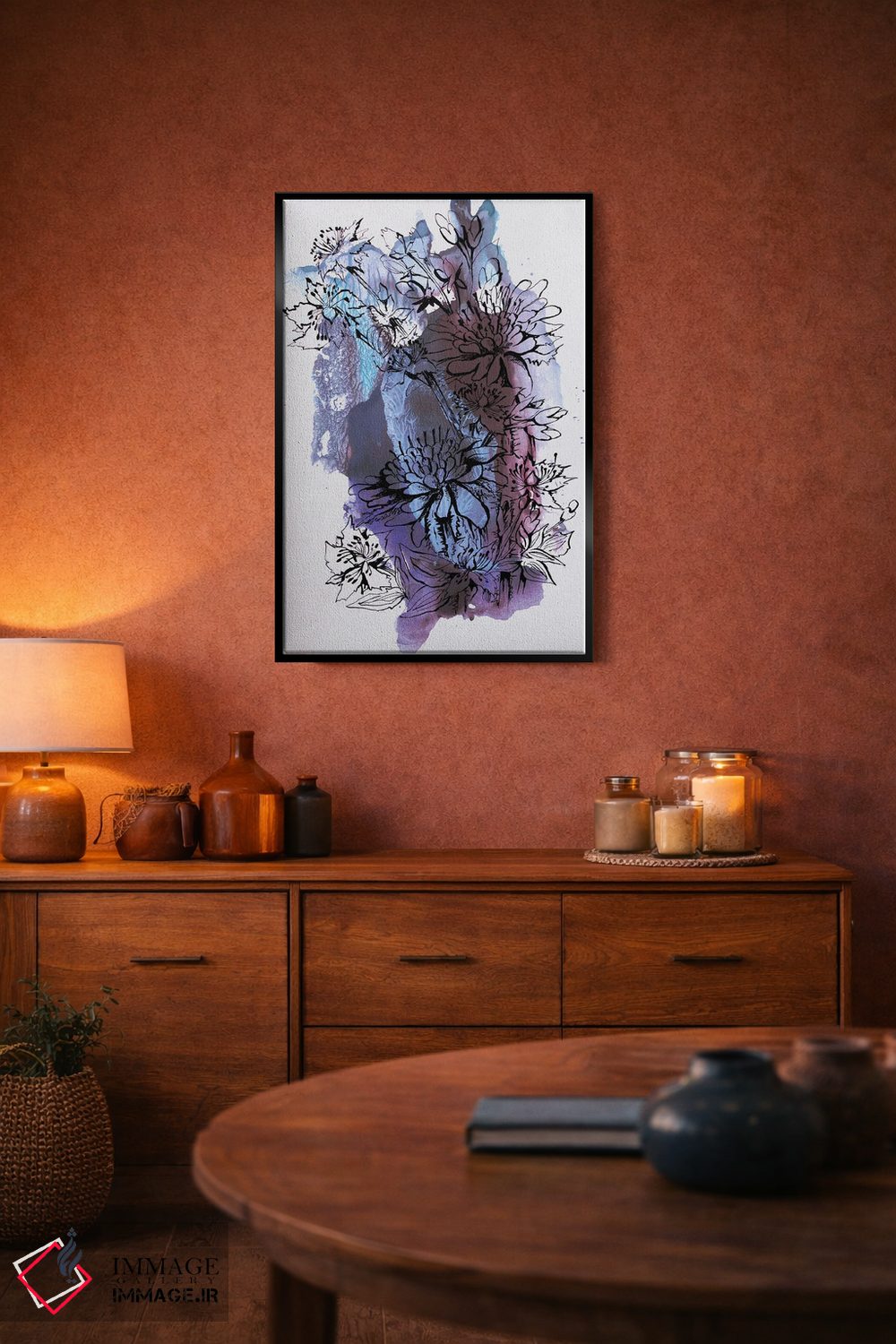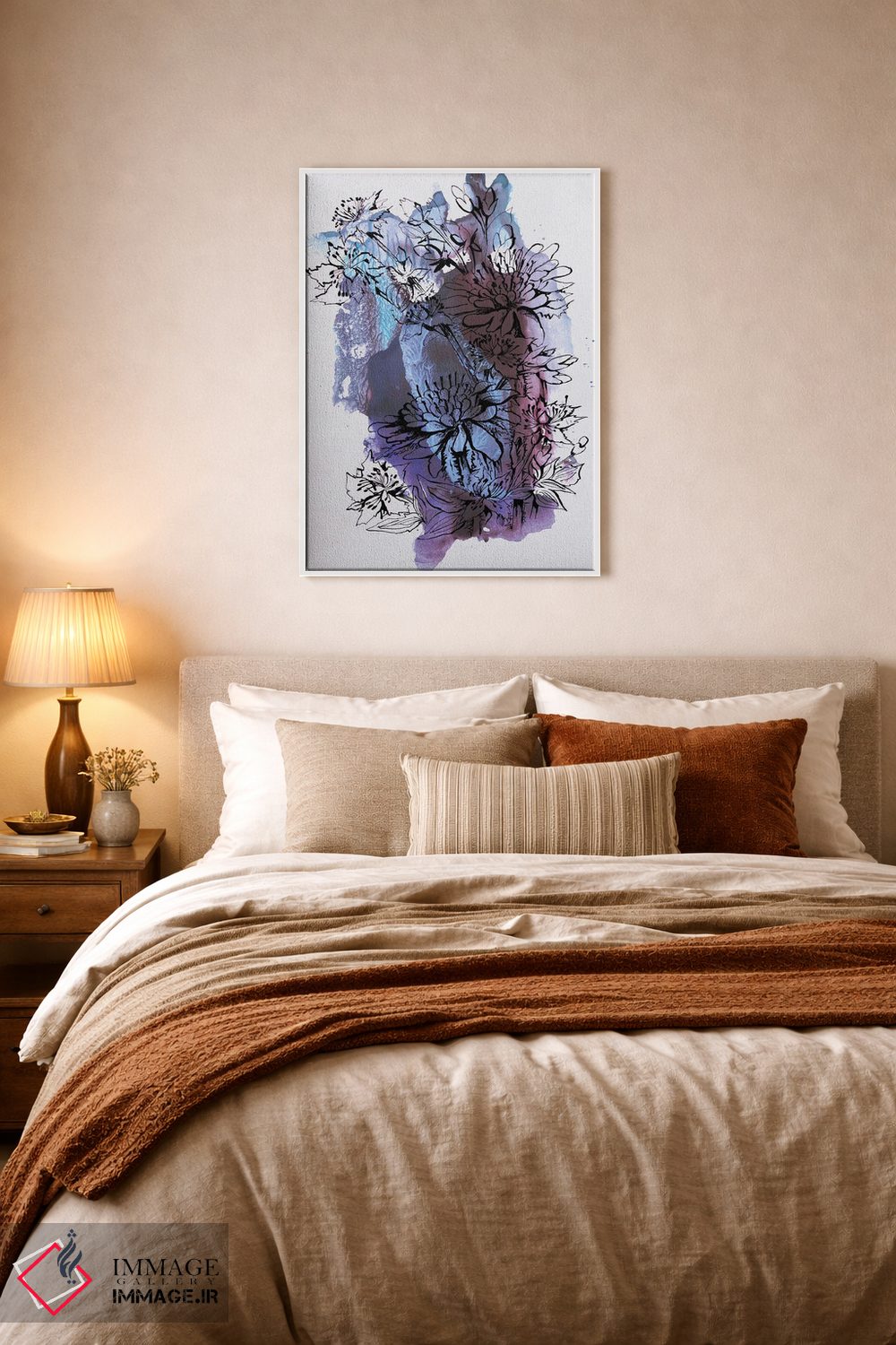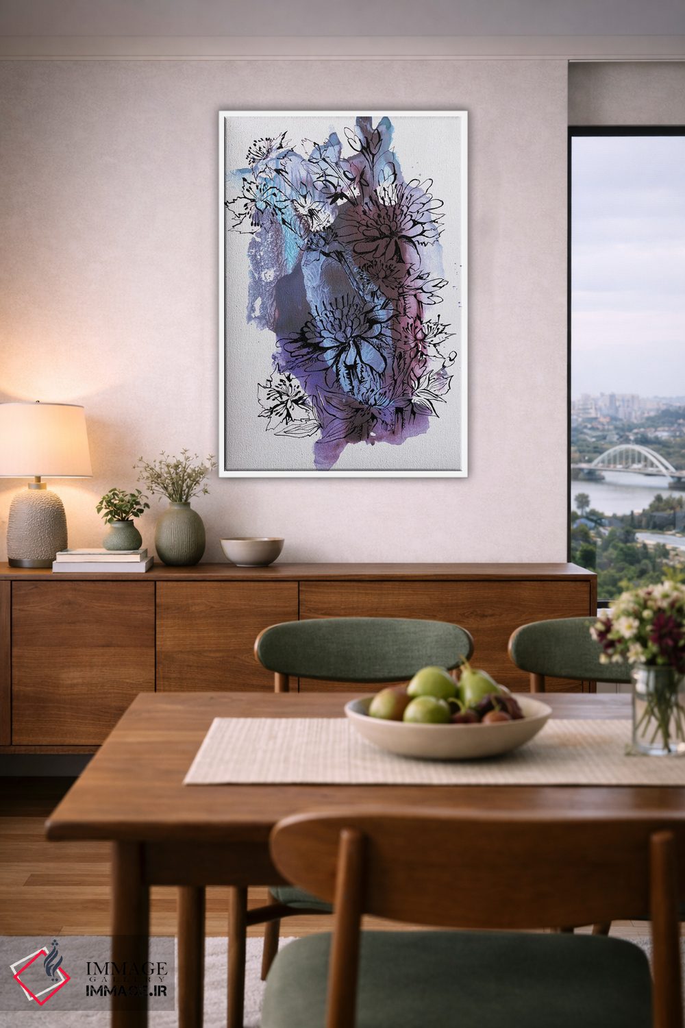 تابلو انتزاعی گل ها اثر کاترینا بورتسووا - نمای روبه‌رو روی دیوار