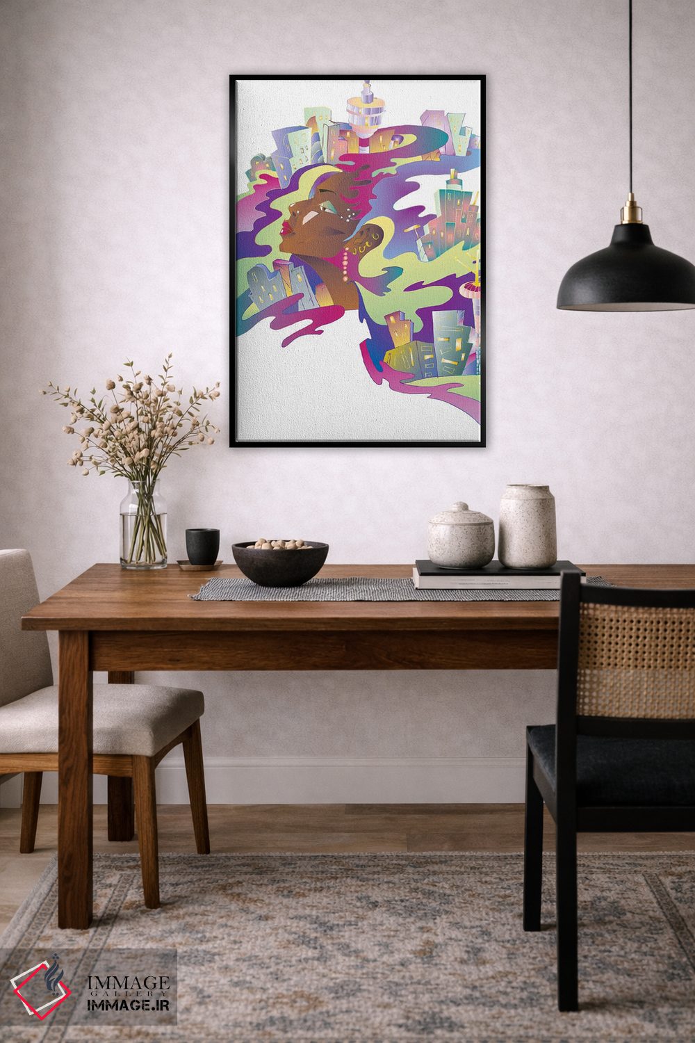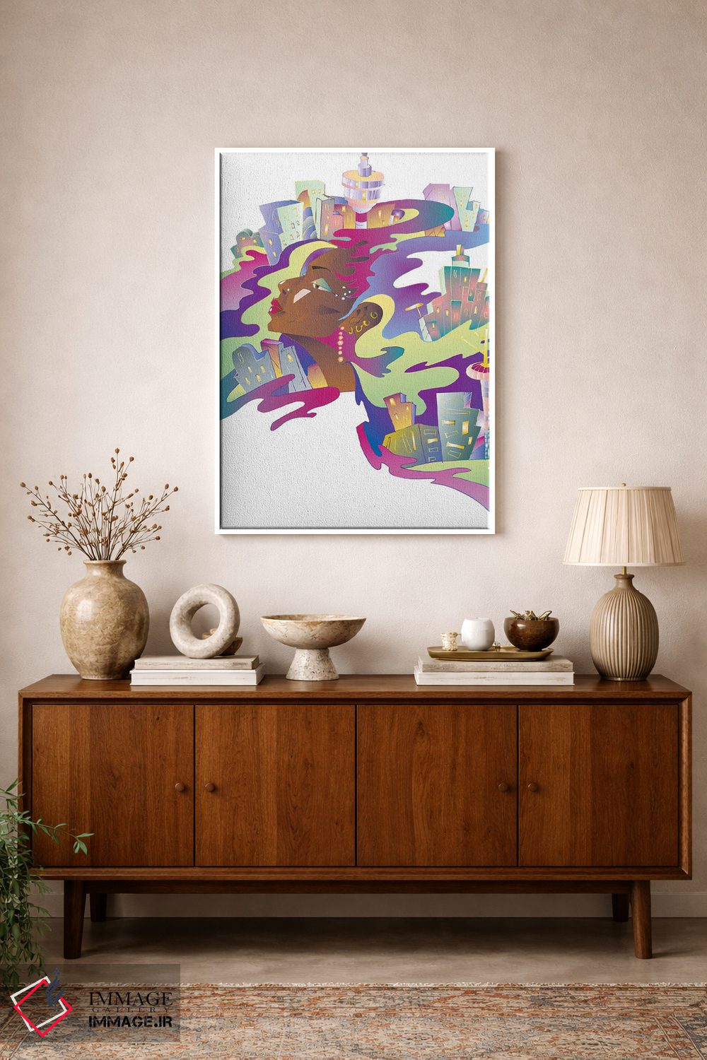 بوم گالری ایماژ نسخهی دکوراتیوِ سطحبالا از یک اثر هنری است؛ روی کنواس بدون اسید با بافت ظریف و یکنواخت با اجرای چاپ هنری جیکلی (Giclée) برای آرتپرینتهای جدی با جوهرهای آرشیویِ حرفهای برای لایههای رنگی خواناتر؛ خروجی، یک «تابلو» است نه یک چاپ ساده. آمادهی نصب روی دیوار؛ کشیدگی دقیق روی چهارچوب و ارائهی مرتب.