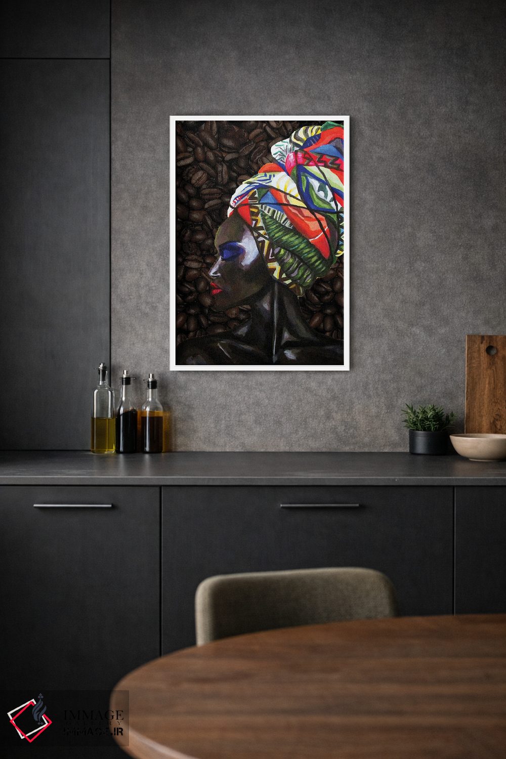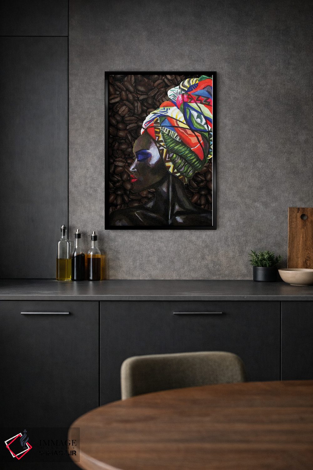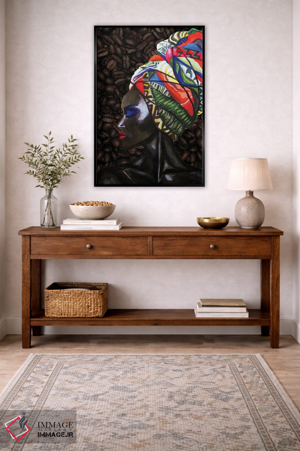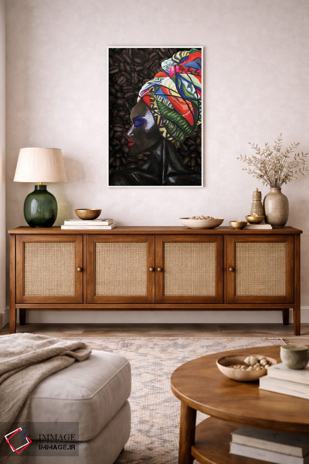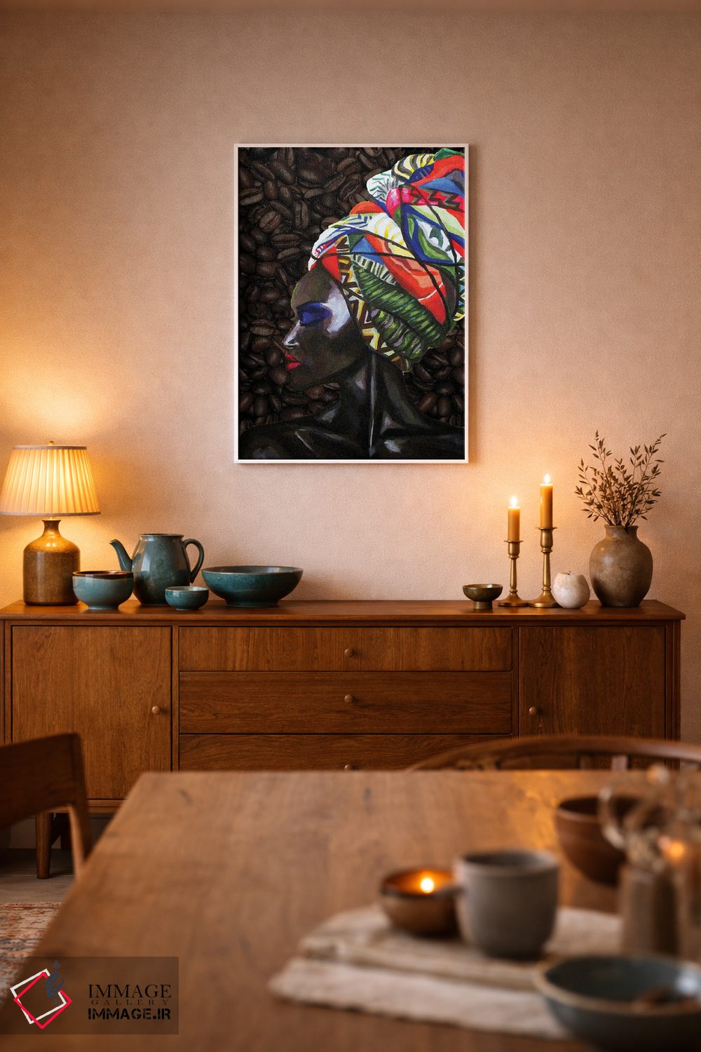 براساس پالت ترکیبی اثر، قاب تیک گرم (چوبی) پیشنهاد اول است و مشکی مات (فریم متوسط) مکمل. برای سفارشهای پروژهای با ابعاد و قابهای اختصاصی با ایماژ در تماس باشید.