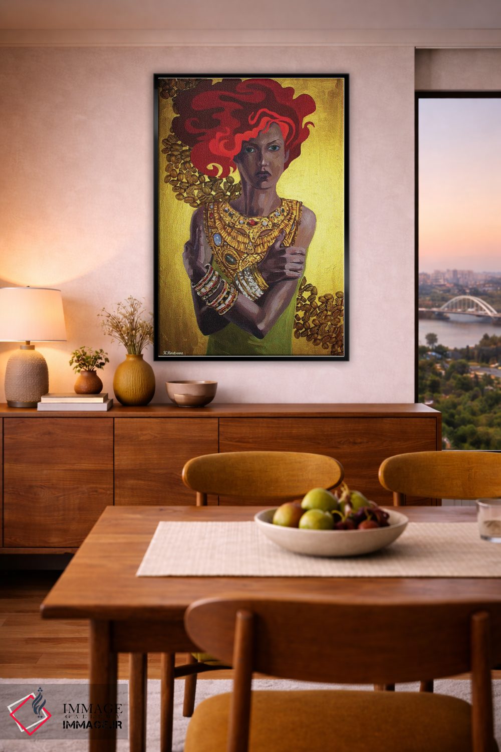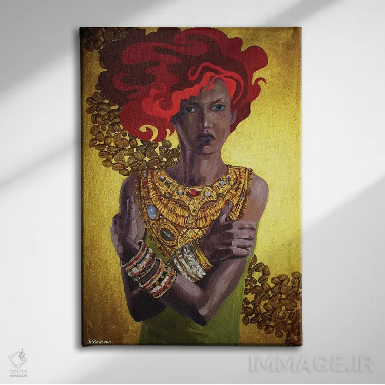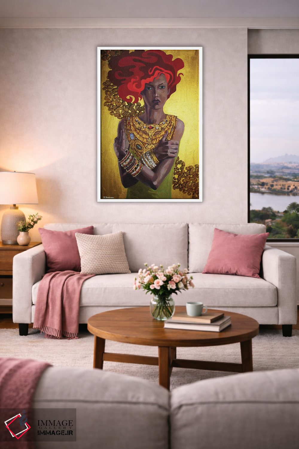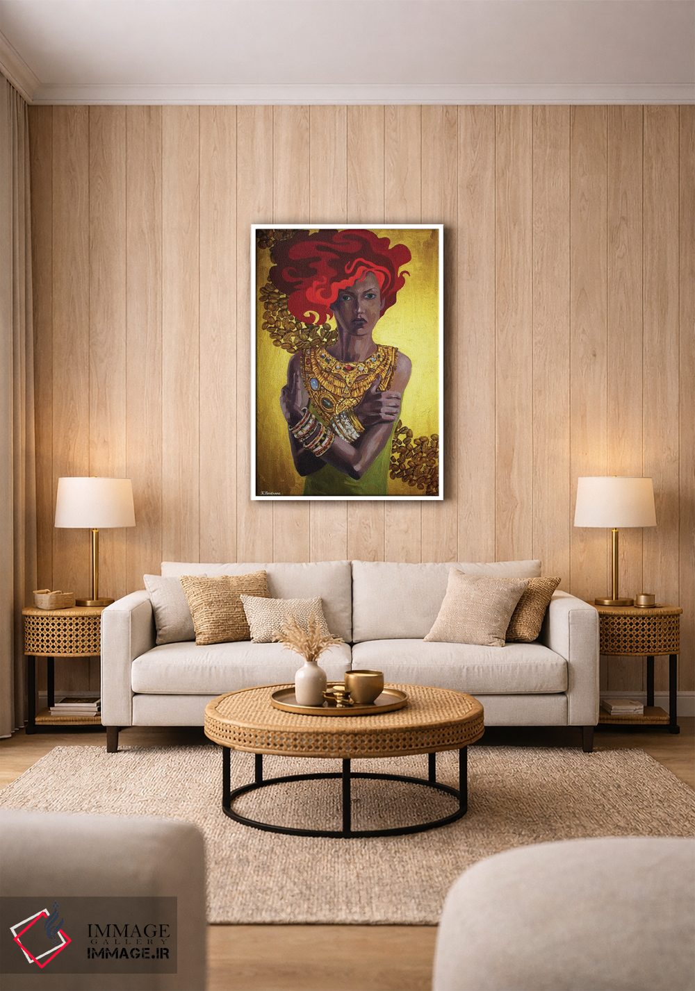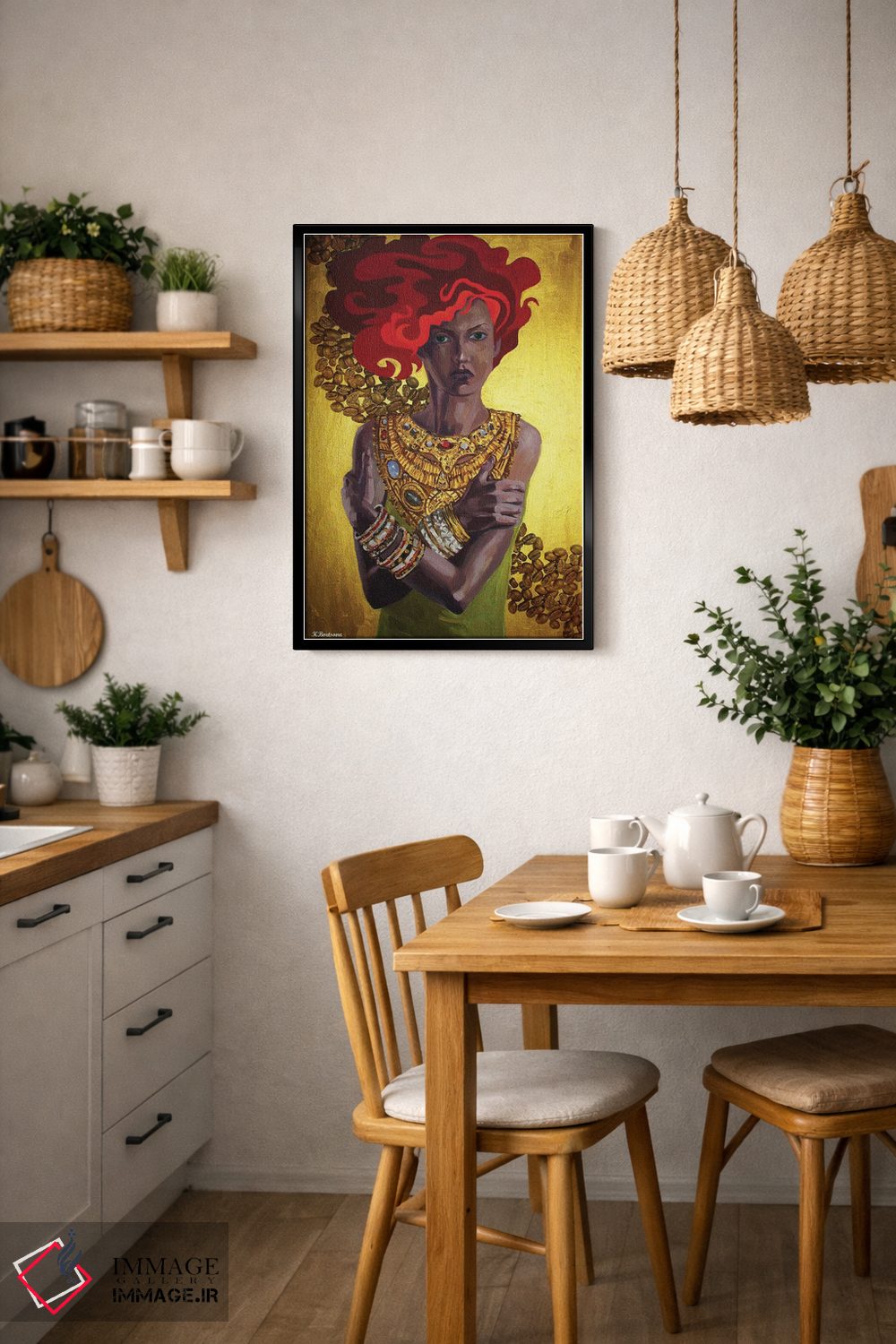 براساس پالت ترکیبی اثر، قاب تیک گرم (چوبی) پیشنهاد اول است و مشکی مات (فریم متوسط) مکمل. برای سفارشهای پروژهای با ابعاد و قابهای اختصاصی با ایماژ در تماس باشید.