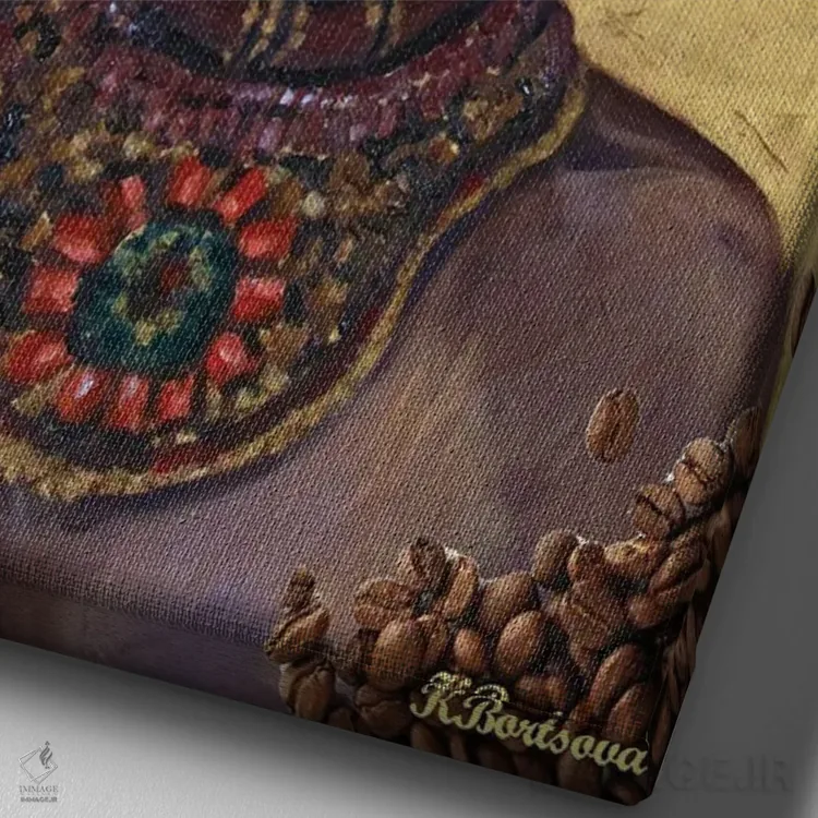 تابلو دکوراتیو عطر قهوه اثر کاترینا بورتسووا - نمای نزدیک بافت بوم