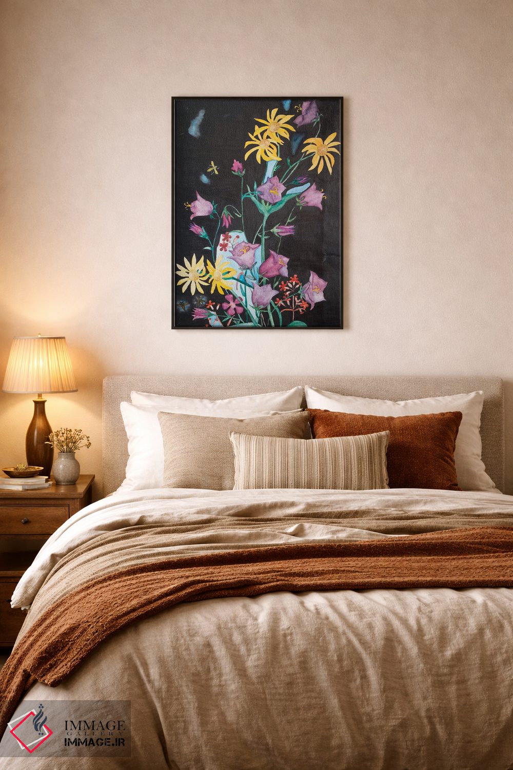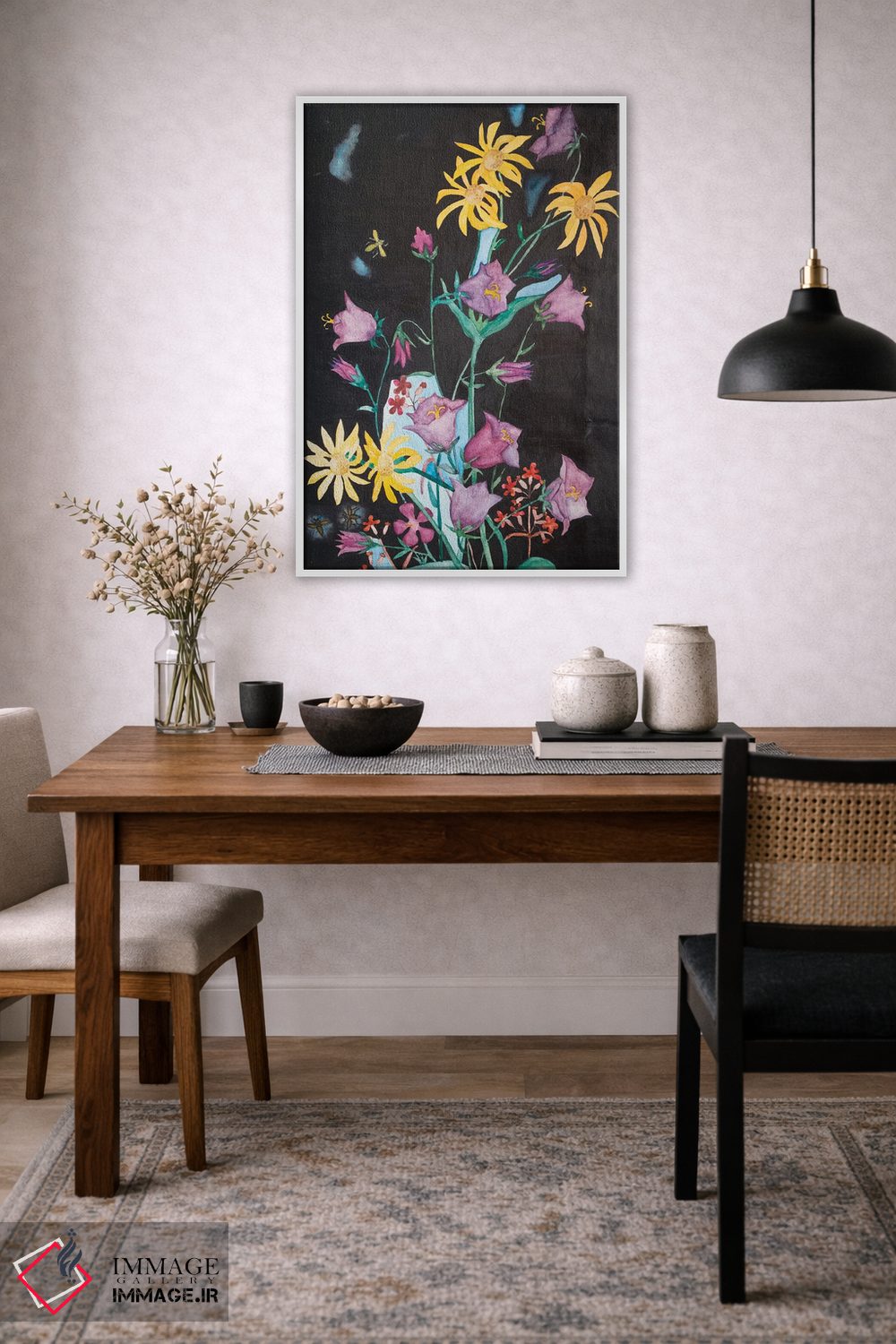 بوم گالری ایماژ نسخهی چیدماناتیوِ حرفهای از یک اثر هنری است؛ روی کنواس سفیدِ یکدست و بدون اسید با فرآیند چاپ حرفهای جیکلی (Giclée) و کنترل دقیق تونها با سیستم رنگ Epson UltraChrome HDR برای نیمسایههای نرمتر و سایههای جزئیتر؛ روی دیوار، کار یکدستتر و خوشکیفیتتر دیده میشود. تابلو پس از آمادهسازی روی کلاف کشیده میشود و نصب آن ساده و بیدردسر است.