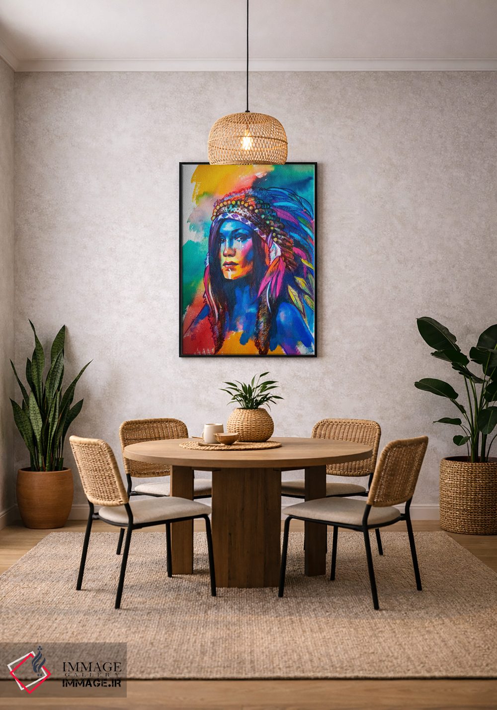 براساس پالت ترکیبی اثر، قاب تیک گرم (چوبی) پیشنهاد اول است و مشکی مات (فریم متوسط) مکمل.