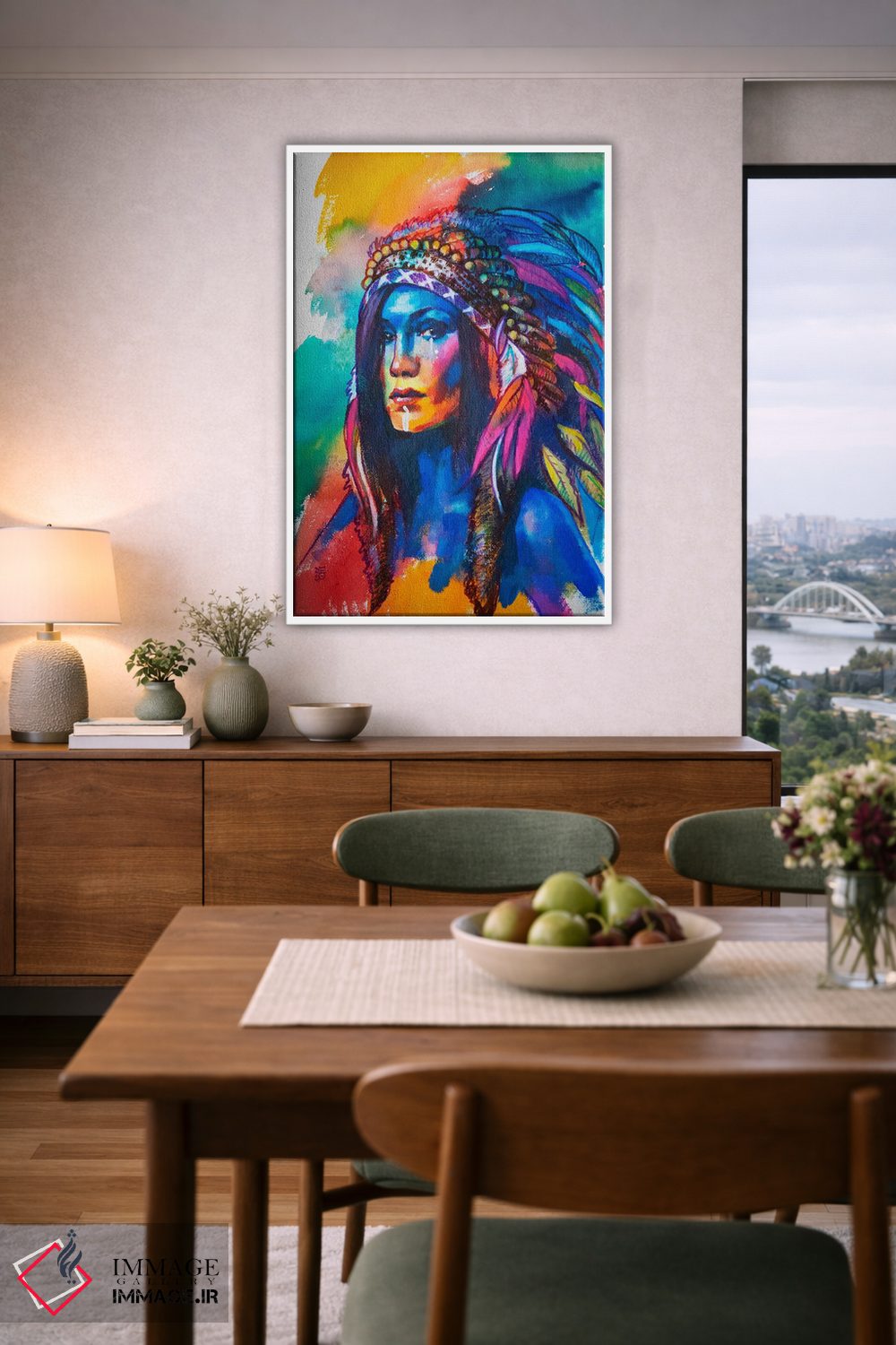 براساس پالت ترکیبی اثر، قاب تیک گرم (چوبی) پیشنهاد اول است و مشکی مات (فریم متوسط) مکمل. برای سفارشهای پروژهای با ابعاد و قابهای اختصاصی با ایماژ در تماس باشید.