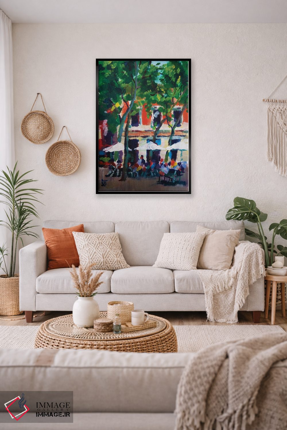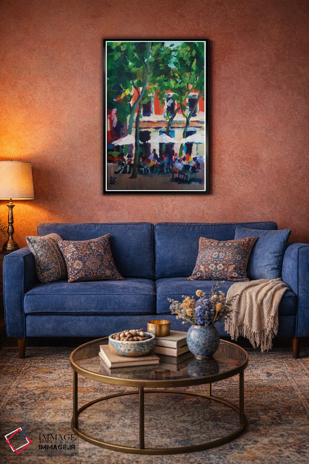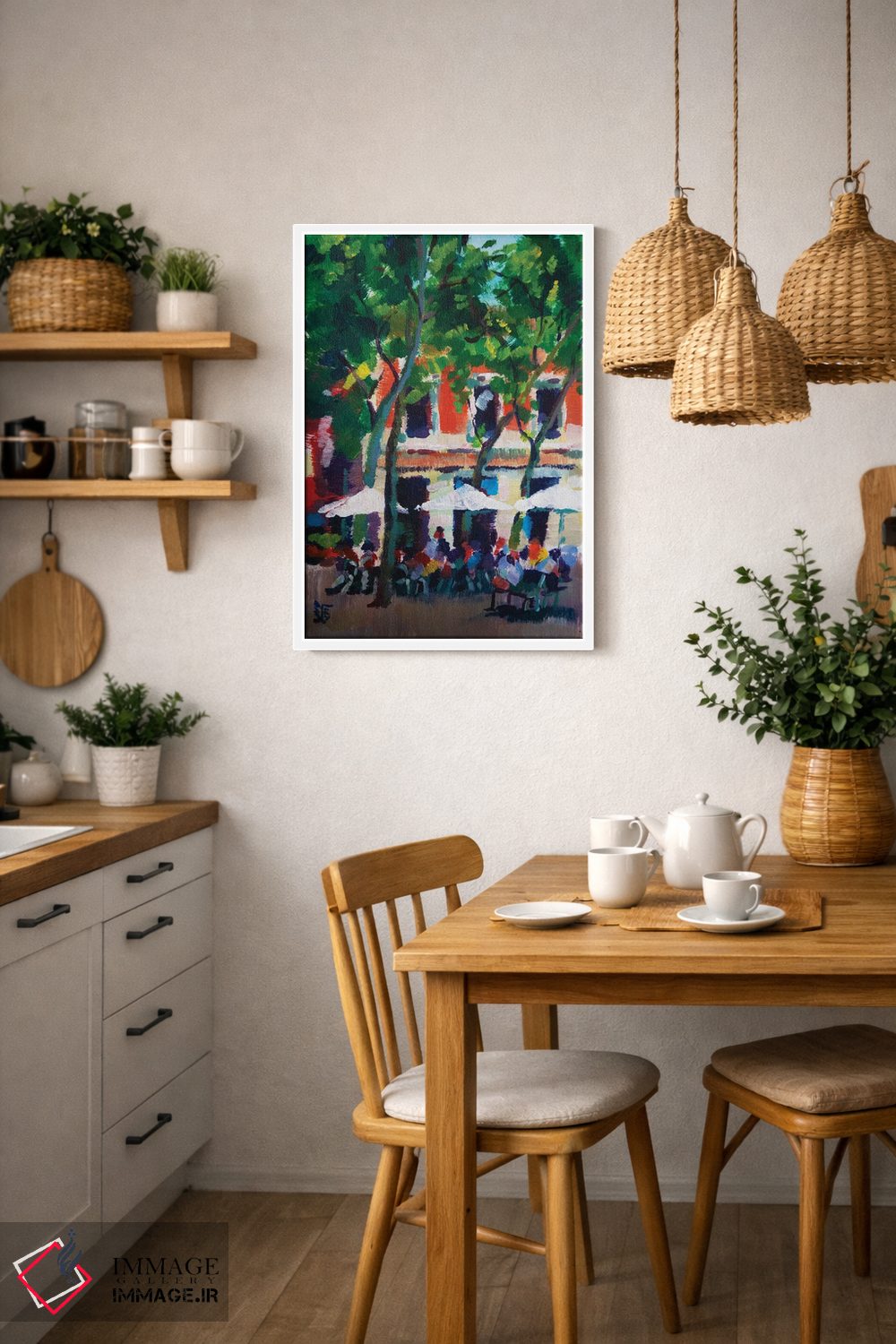 براساس پالت ترکیبی اثر، قاب تیک گرم (چوبی) پیشنهاد اول است و مشکی مات (فریم متوسط) مکمل. برای سفارشهای پروژهای با ابعاد و قابهای اختصاصی با ایماژ در تماس باشید.