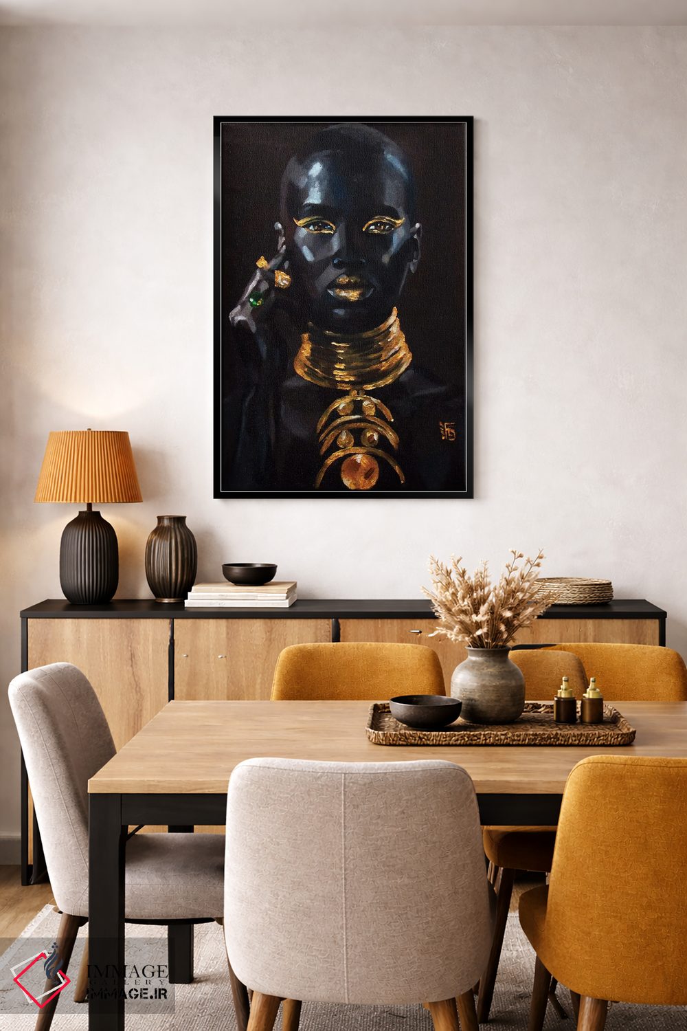براساس پالت گرم اثر، قاب تیک گرم (چوبی) پیشنهاد اول است و مشکی مات (فریم متوسط) مکمل. برای سفارشهای پروژهای با ابعاد و قابهای اختصاصی با ایماژ در تماس باشید.