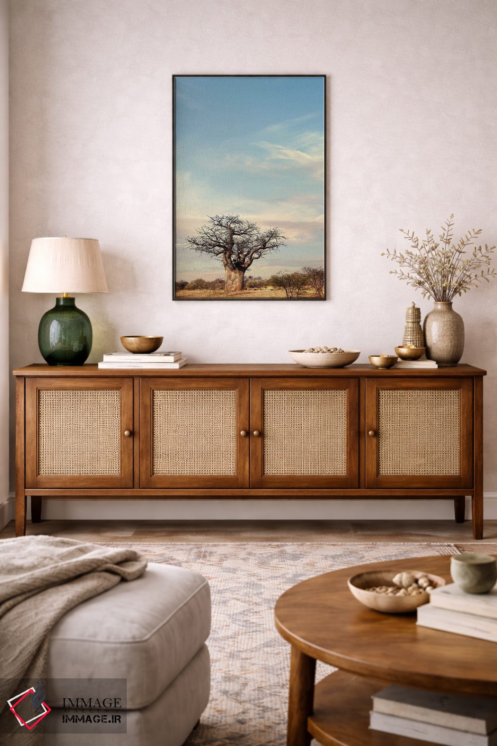 «بائوباب نای IV (نام خاص)» اثرِ «کلاوس تیدگه» برای فضاهای مدرن هم مناسب است؛ چون تصویر ساده و قابلخواندن است و با چیدمان درگیر نمیشود.