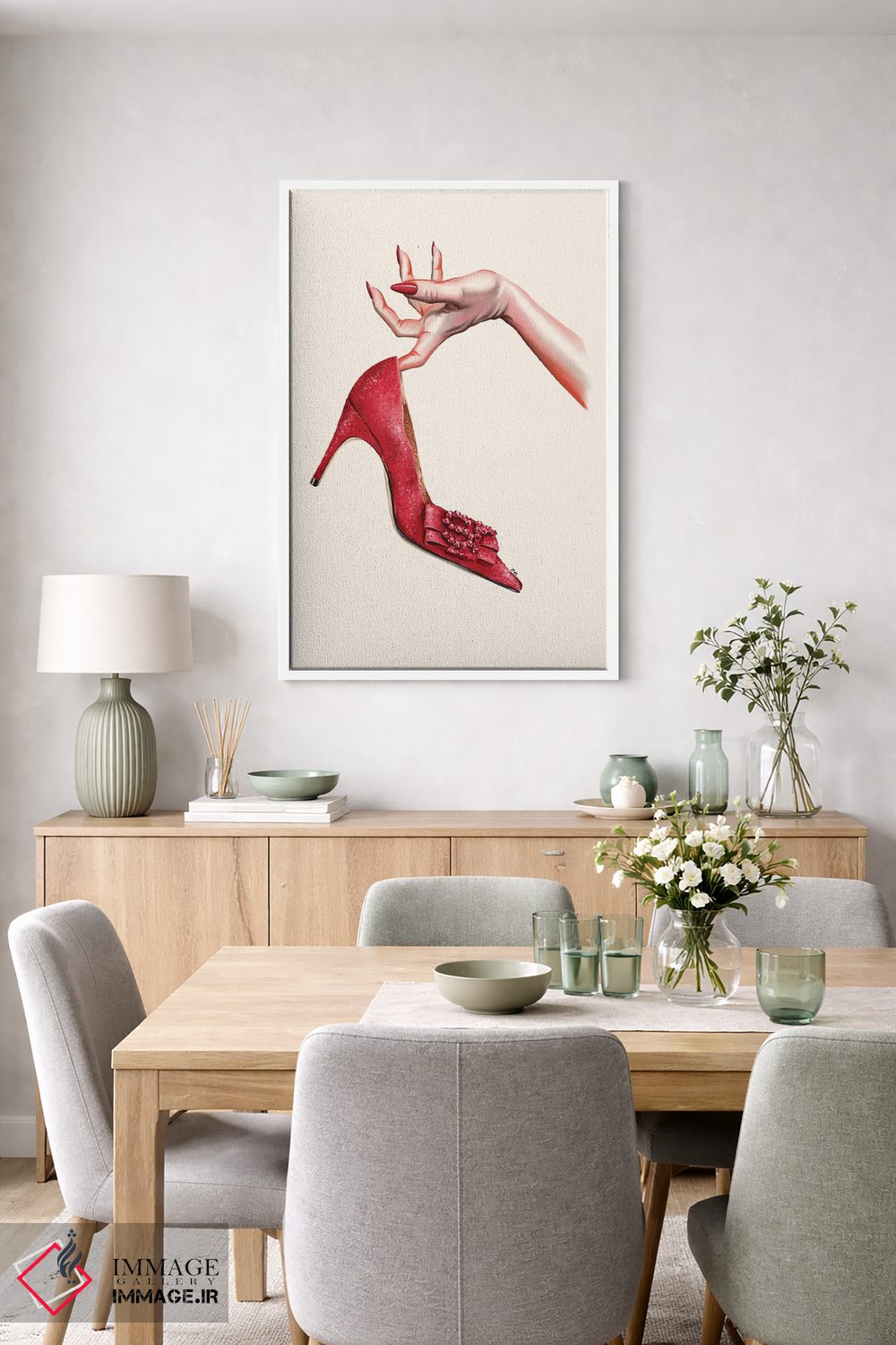 تابلو دکوراتیو کفش من! اثر کاترینا پاشه گور - نمای روبه‌رو روی دیوار