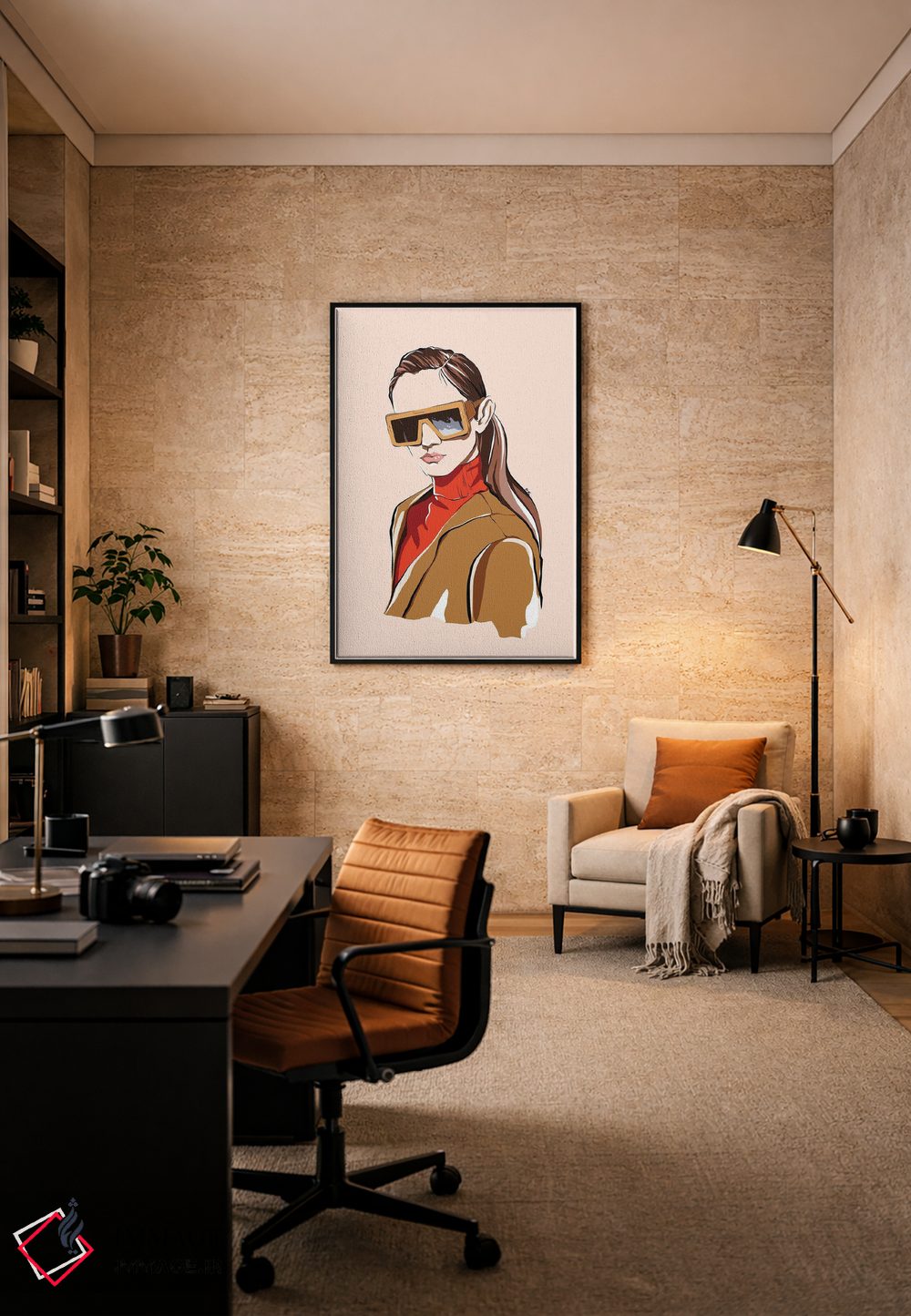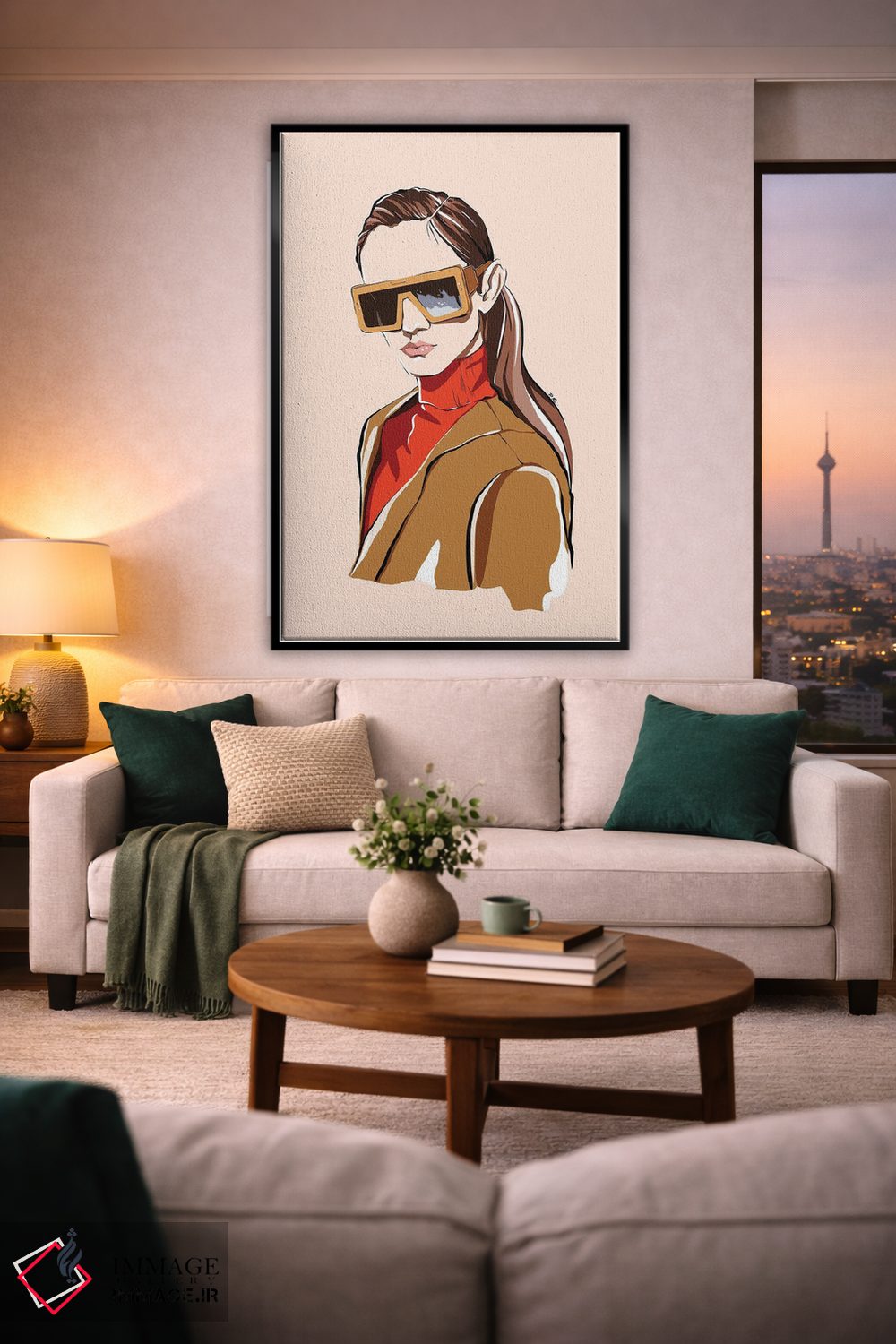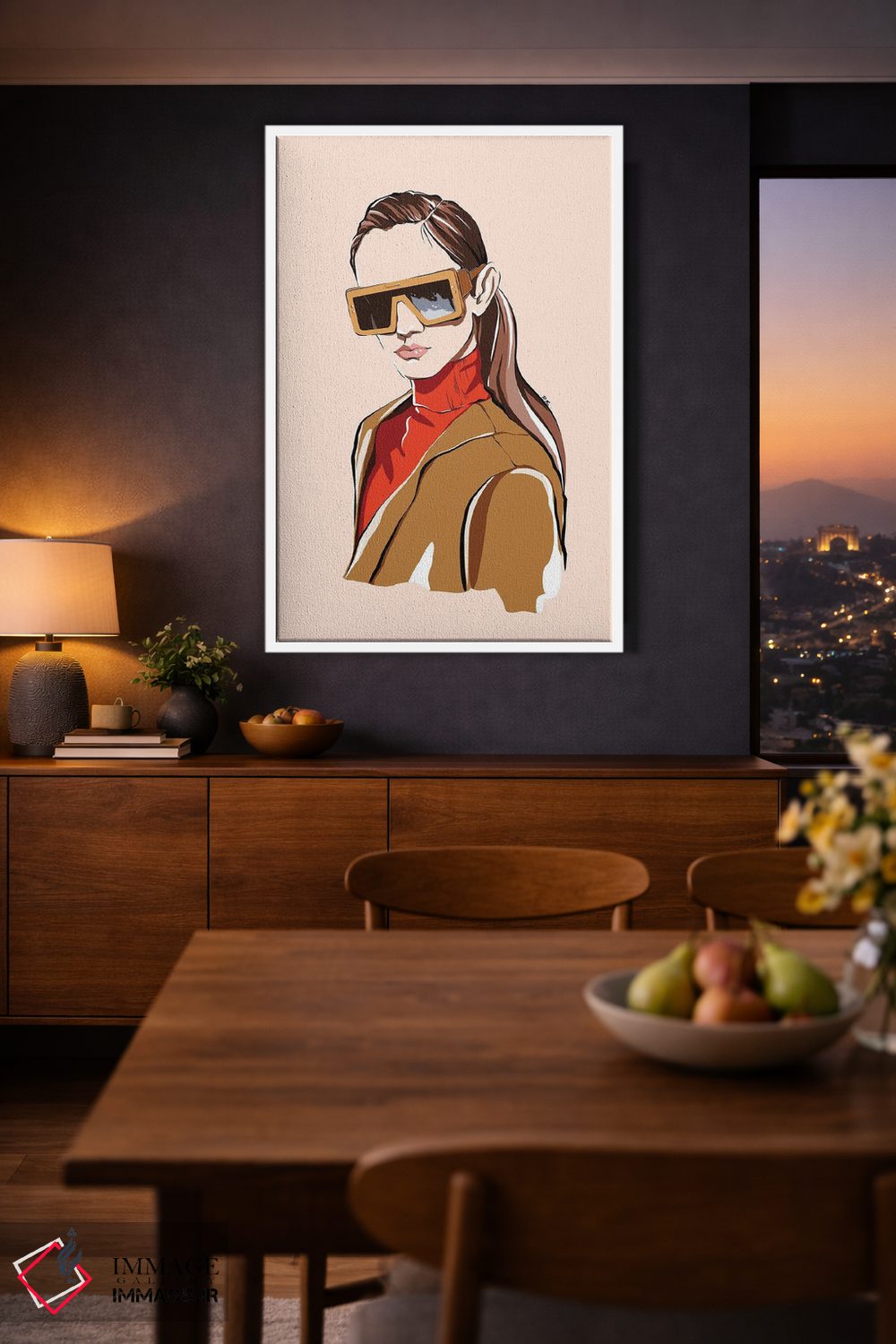 براساس پالت گرم اثر، قاب بلوط روشن (چوبی) پیشنهاد اول است و استخوانی ملایم مکمل. برای سفارشهای پروژهای با ابعاد و قابهای اختصاصی با ایماژ در تماس باشید.