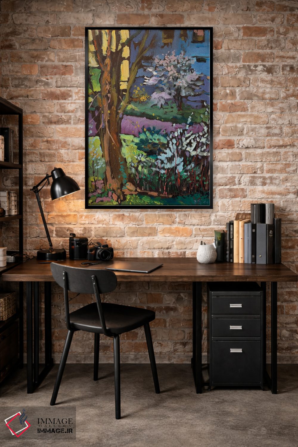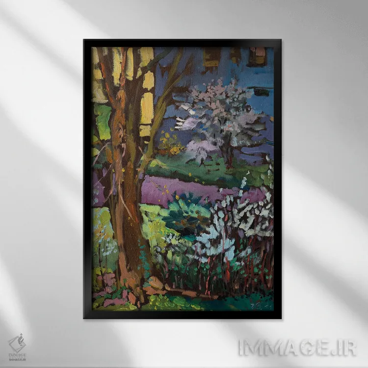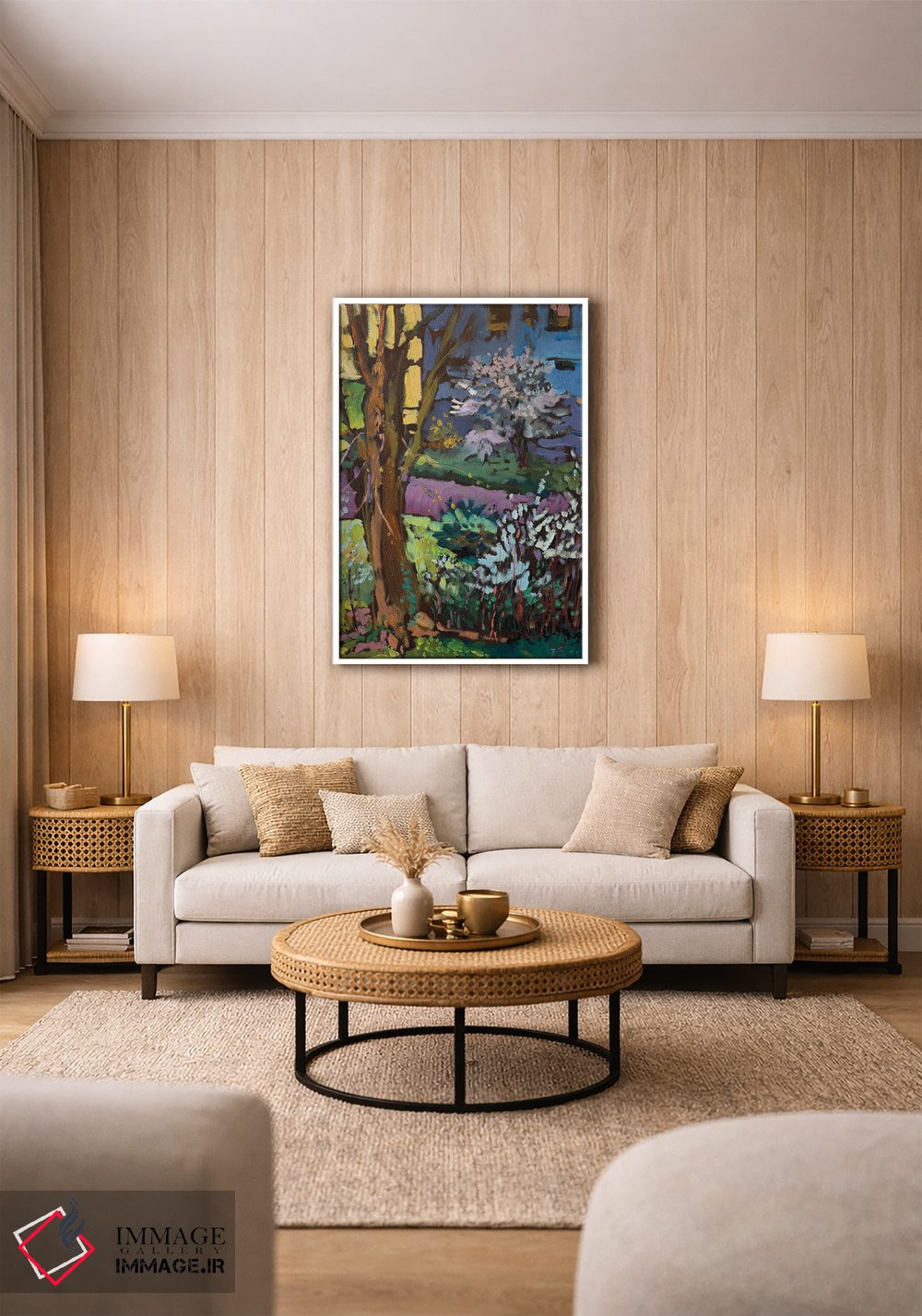 براساس پالت ترکیبی اثر، قاب تیک گرم (چوبی) پیشنهاد اول است و مشکی مات (فریم متوسط) مکمل. برای سفارشهای پروژهای با ابعاد و قابهای اختصاصی با ایماژ در تماس باشید.