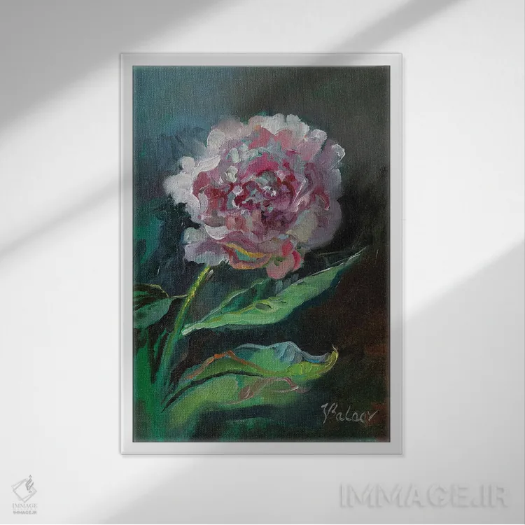 تابلو دکوراتیو گل صدتومانی صورتی اثر کاتارینا والوا