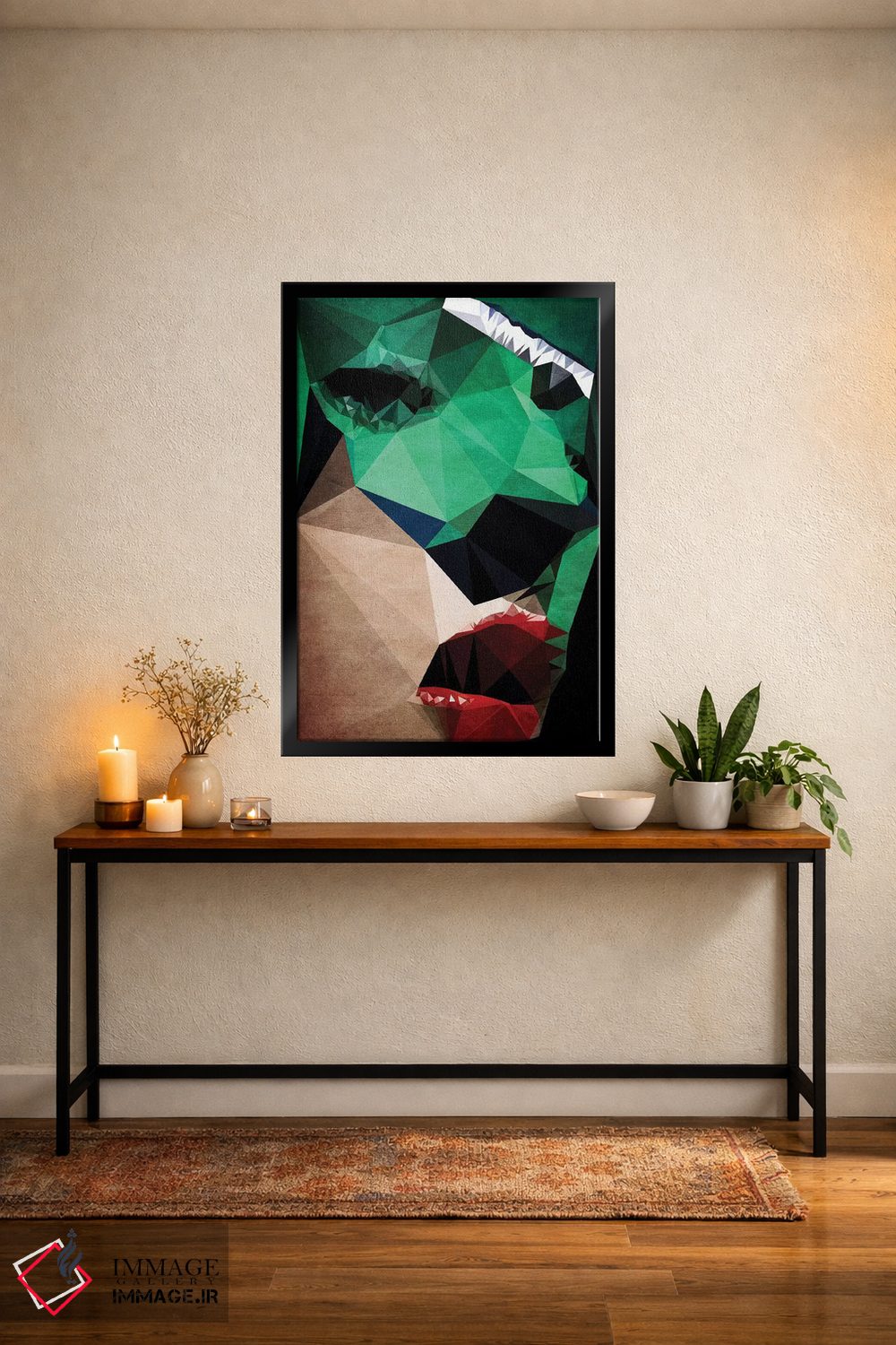«قهرمان اتاق تاریک» اثرِ «کوبیستیکا (آرتیست یا برند هنری)» در قالب هنری، به فضا عمق و ریتم میدهد؛ برای کنار مبلمان ساده و نورپردازی گرم عالی است.