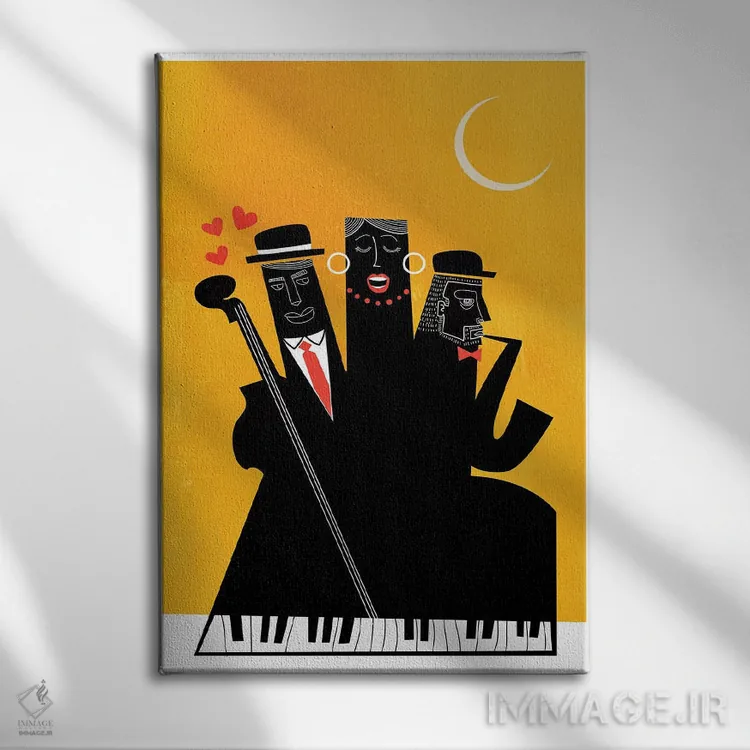 این تابلو تزئینی با موضوعِ این اثر برای هدیه و دکورهای روشن همیشه جواب میدهد: «جاز کازابلانکا—زرد» اثرِ «کوبیستیکا (آرتیست یا برند هنری)».