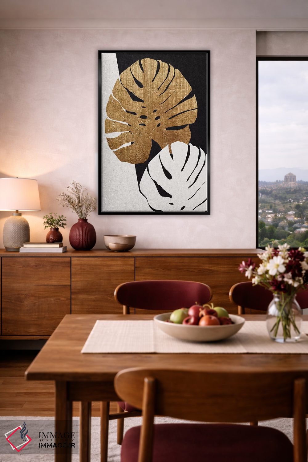 براساس پالت گرم اثر، قاب تیک گرم (چوبی) پیشنهاد اول است و مشکی مات (فریم متوسط) مکمل. برای سفارشهای پروژهای با ابعاد و قابهای اختصاصی با ایماژ در تماس باشید.