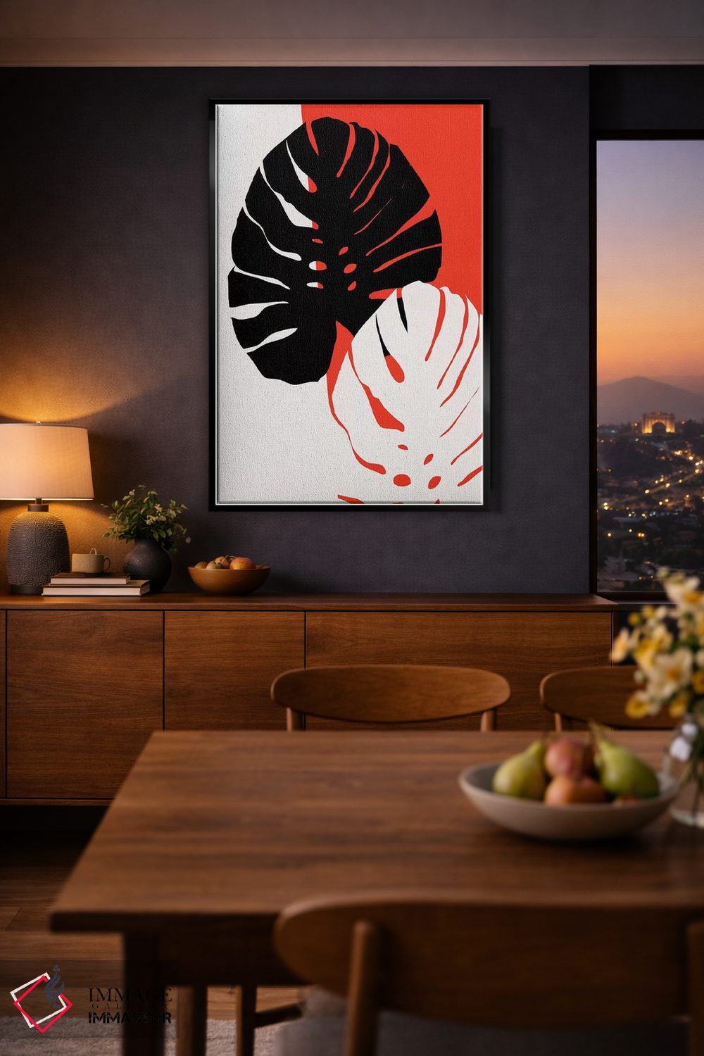 براساس پالت گرم اثر، قاب تیک گرم (چوبی) پیشنهاد اول است و مشکی مات (فریم متوسط) مکمل. برای سفارشهای پروژهای با ابعاد و قابهای اختصاصی با ایماژ در تماس باشید.