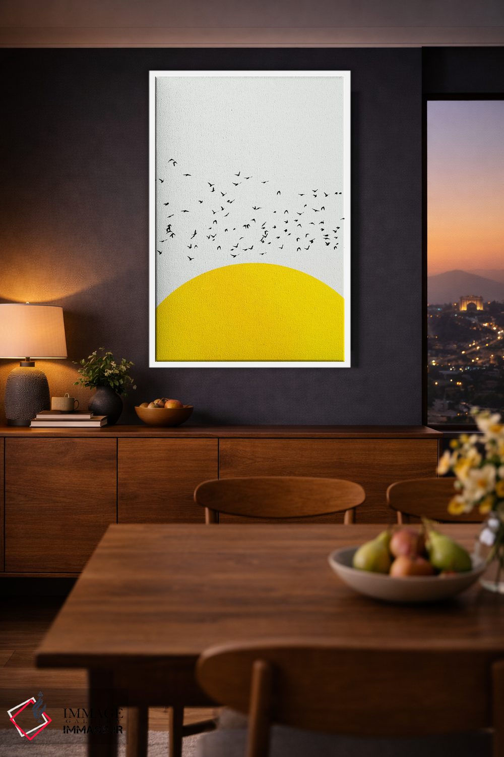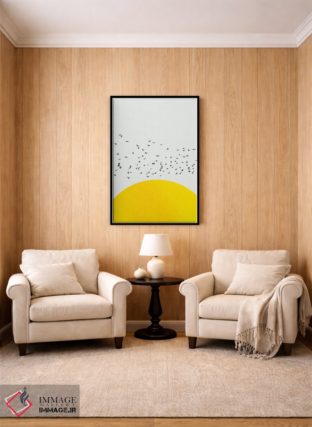 براساس پالت گرم اثر، قاب تیک گرم (چوبی) پیشنهاد اول است و مشکی مات (فریم متوسط) مکمل. برای سفارشهای پروژهای با ابعاد و قابهای اختصاصی با ایماژ در تماس باشید.