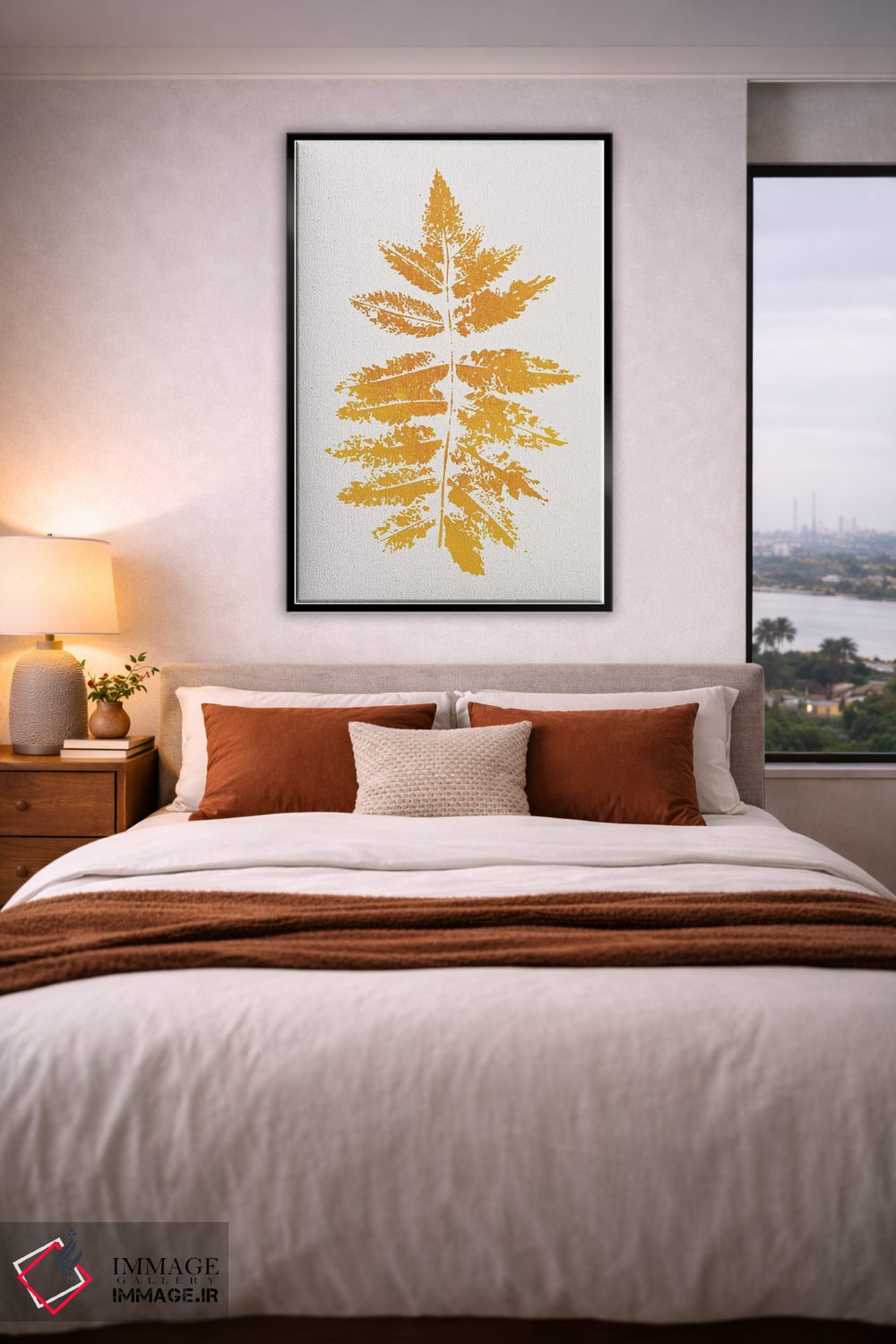 براساس پالت گرم اثر، قاب تیک گرم (چوبی) پیشنهاد اول است و مشکی مات (فریم متوسط) مکمل. برای سفارشهای پروژهای با ابعاد و قابهای اختصاصی با ایماژ در تماس باشید.