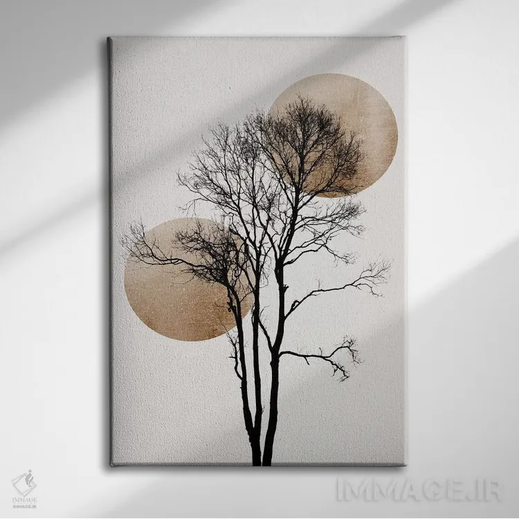 تابلو مینیمال خورشید و ماه پنهان - طلایی اثر کوبیستیکا - نمای پرسپکتیو محصول