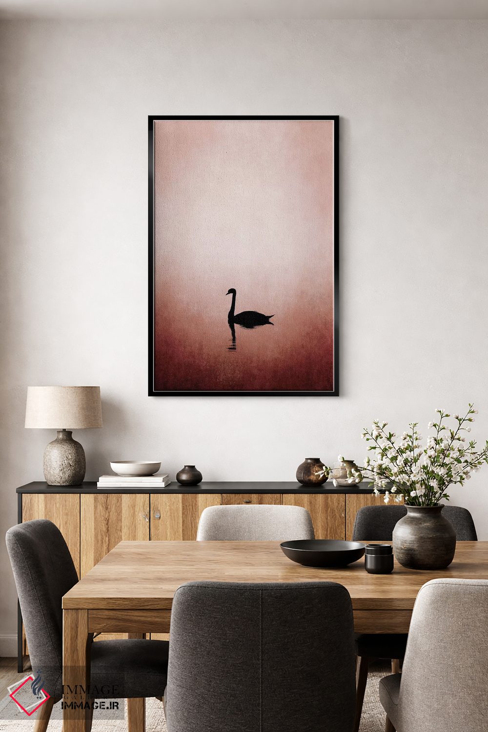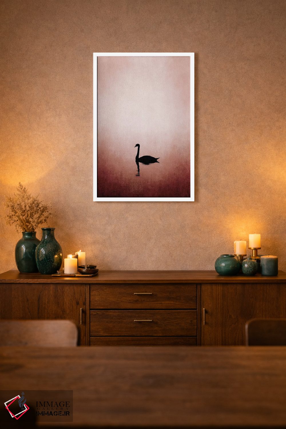 «دریاچه قوها (باله مشهور)» اثرِ «کوبیستیکا (آرتیست یا برند هنری)» میتواند گرما و شخصیت به فضا اضافه کند؛ برای کافههای کوچک و صمیمی پیشنهاد میشود. با نورپردازی نقطهای، جذابتر هم میشود.