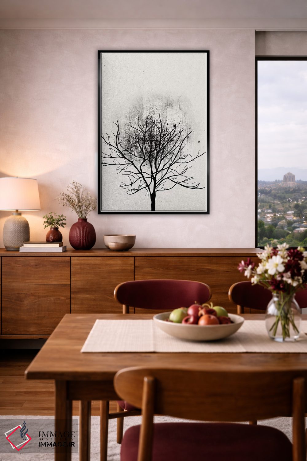 برای فضاهایی که به لطافت نیاز دارند، «مطالعه درخت شماره ۳» اثرِ «کوبیستیکا (آرتیست یا برند هنری)» چیدمان را از خشکی بیرون میآورد؛ برای فضای غذاخوری انتخابی خوشسلیقه است. حضورش آرام است، اما بیاثر نیست.