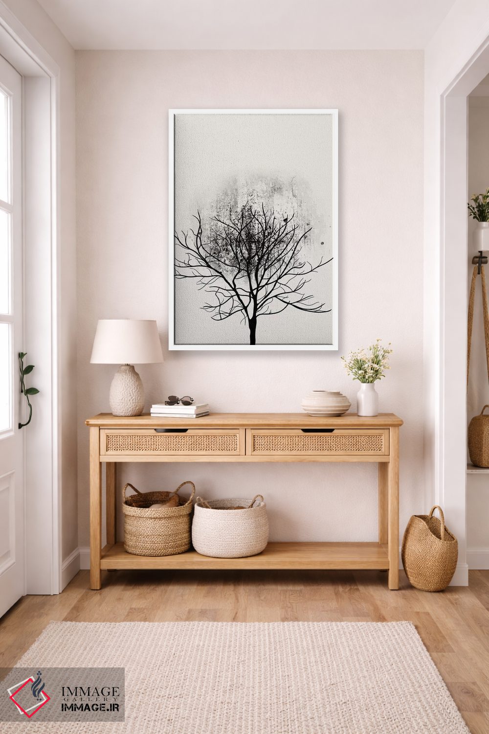 براساس پالت خنثی اثر، قاب مشکی مات (فریم باریک) پیشنهاد اول است و سفید مات (فریم باریک) مکمل. برای سفارشهای پروژهای با ابعاد و قابهای اختصاصی با ایماژ در تماس باشید.