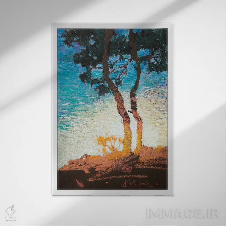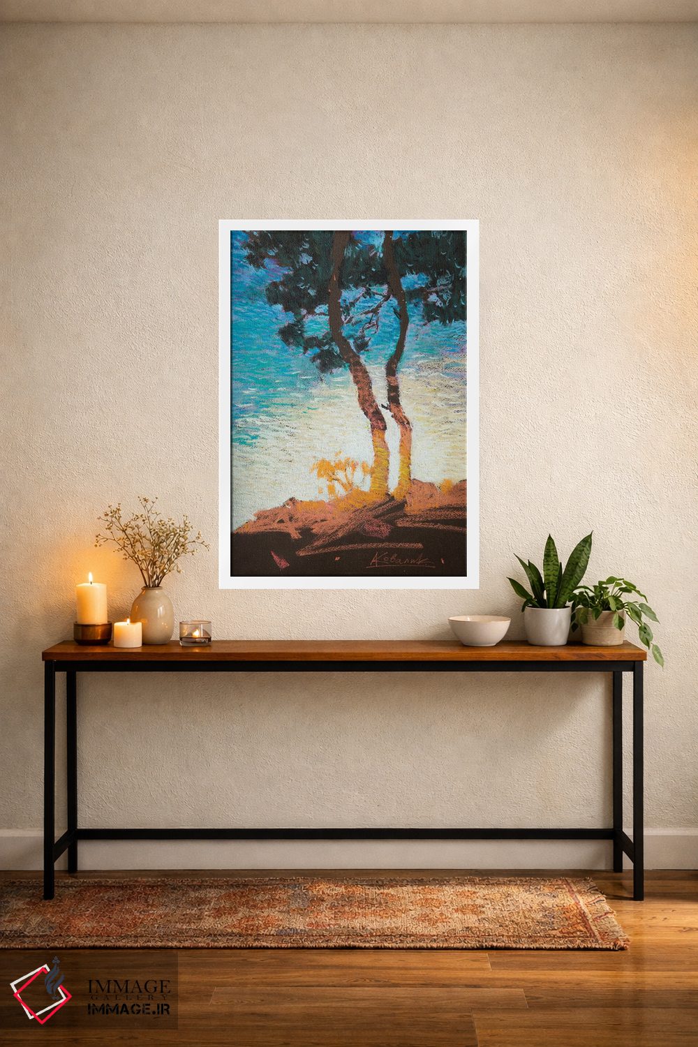 براساس پالت ترکیبی اثر، قاب تیک گرم (چوبی) پیشنهاد اول است و مشکی مات (فریم متوسط) مکمل. برای سفارشهای پروژهای با ابعاد و قابهای اختصاصی با ایماژ در تماس باشید.