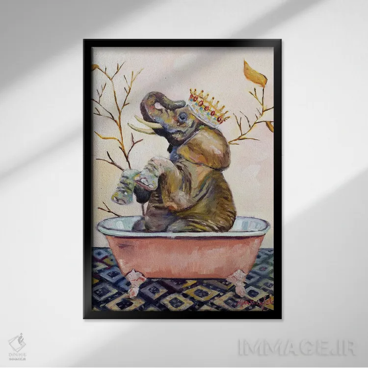 «آببازی اِلی» اثرِ «کارن وبر» میتواند فضا را صمیمیتر و دعوتکنندهتر نشان بدهد؛ برای دیوار کنار میز کار پیشنهاد میشود. حسش صمیمی است، اما کیفیتش جدی و خوشپرداخت.