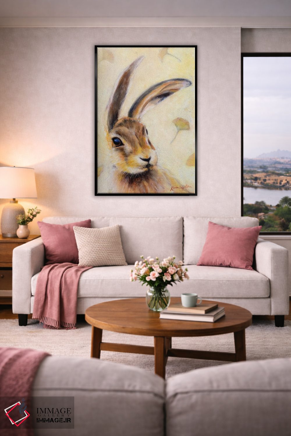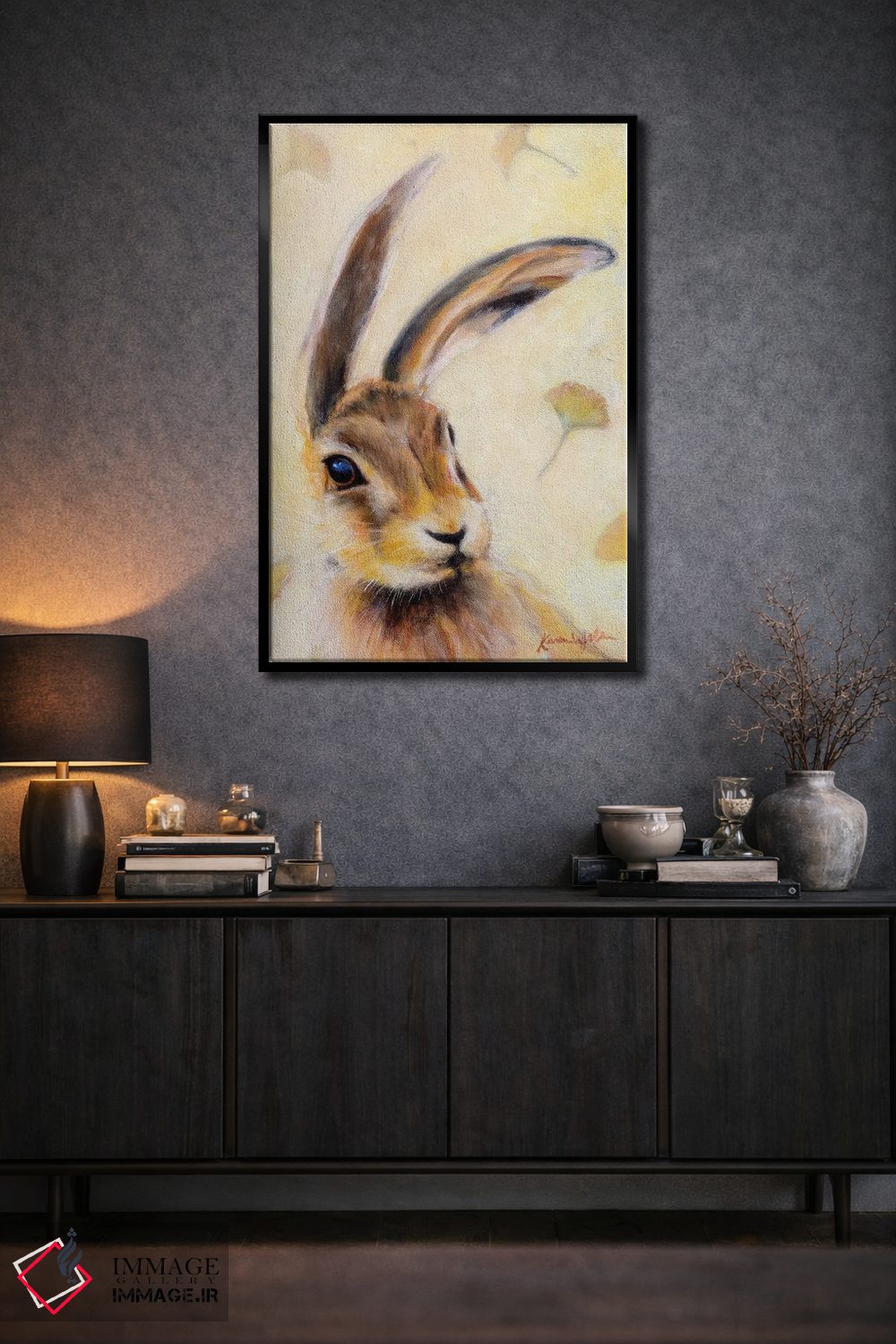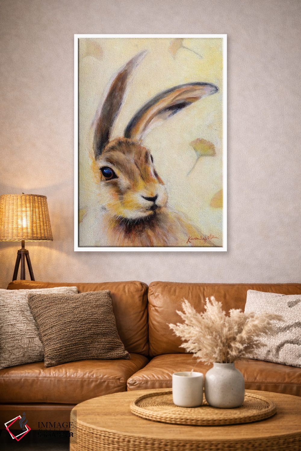 براساس پالت گرم اثر، قاب بلوط روشن (چوبی) پیشنهاد اول است و استخوانی ملایم مکمل. برای سفارشهای پروژهای با ابعاد و قابهای اختصاصی با ایماژ در تماس باشید.