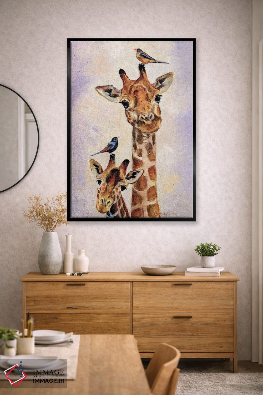 اگر به آثار حیوانات علاقه دارید، «گریس و دریما (نامهای خاص)» اثرِ «کارن وبر» به فضا، گرمیِ ملایم اضافه میکند، برای دکورهایی با رنگهای خنثی گزینهٔ مناسبیست. در کنار گیاهان و نور طبیعی، جذابتر هم میشود.