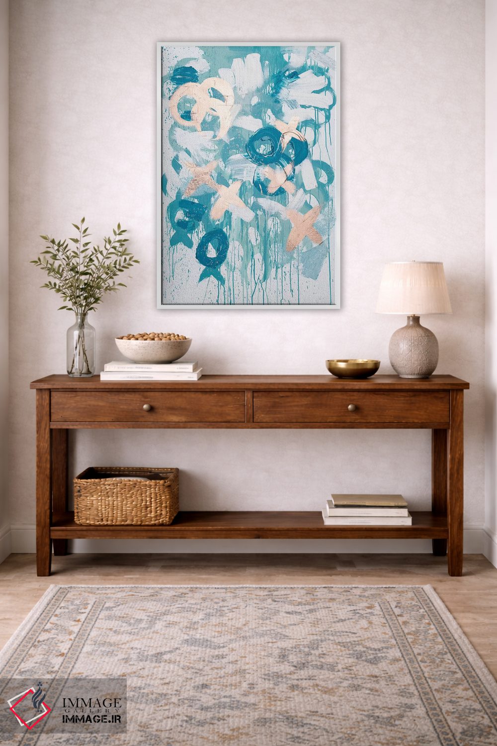 ساختار بوم گالری ایماژ طوری است که اثر روی دیوار «پرداختشده» و حرفهای دیده شود—نه پرزرقوبرقِ بیپایه؛ بلکه دقیق و خوشپرداخت. بافت ظریف کنواس کمک میکند حس اثر هنری را در نگاه نزدیک نگه میدارد. در قابپذیری، قاب مناسب مرز بصری تمیزتری به اثر میدهد و نتیجه را یکدستتر میکند. در نهایت، نتیجه چیزی شبیه تفاوت نسخهی معمولی با نسخهی باکیفیتتر است: نه رنگِ بیشتر، بلکه پرداخت بهتر؛ در کنار نورپردازی درست، جلوهی گالریوار بیشتری حس میشود. اگر یک اکسنت رنگی کوچک در اکسسوریها تکرار شود، هماهنگی محیط کاملتر میشود.