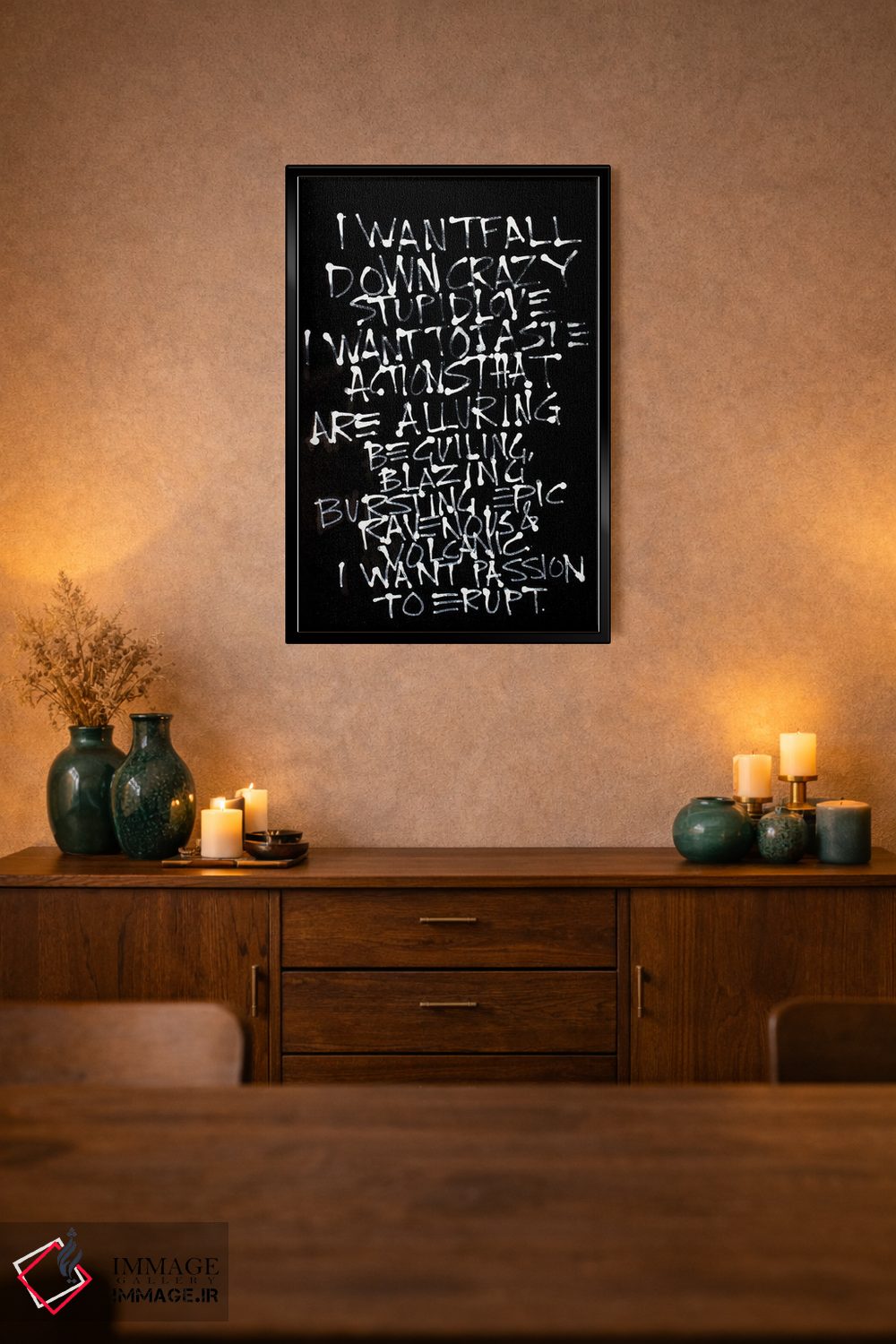 براساس پالت خنثی اثر، قاب مشکی مات (فریم باریک) پیشنهاد اول است و سفید مات (فریم باریک) مکمل. برای سفارشهای پروژهای با ابعاد و قابهای اختصاصی با ایماژ در تماس باشید.