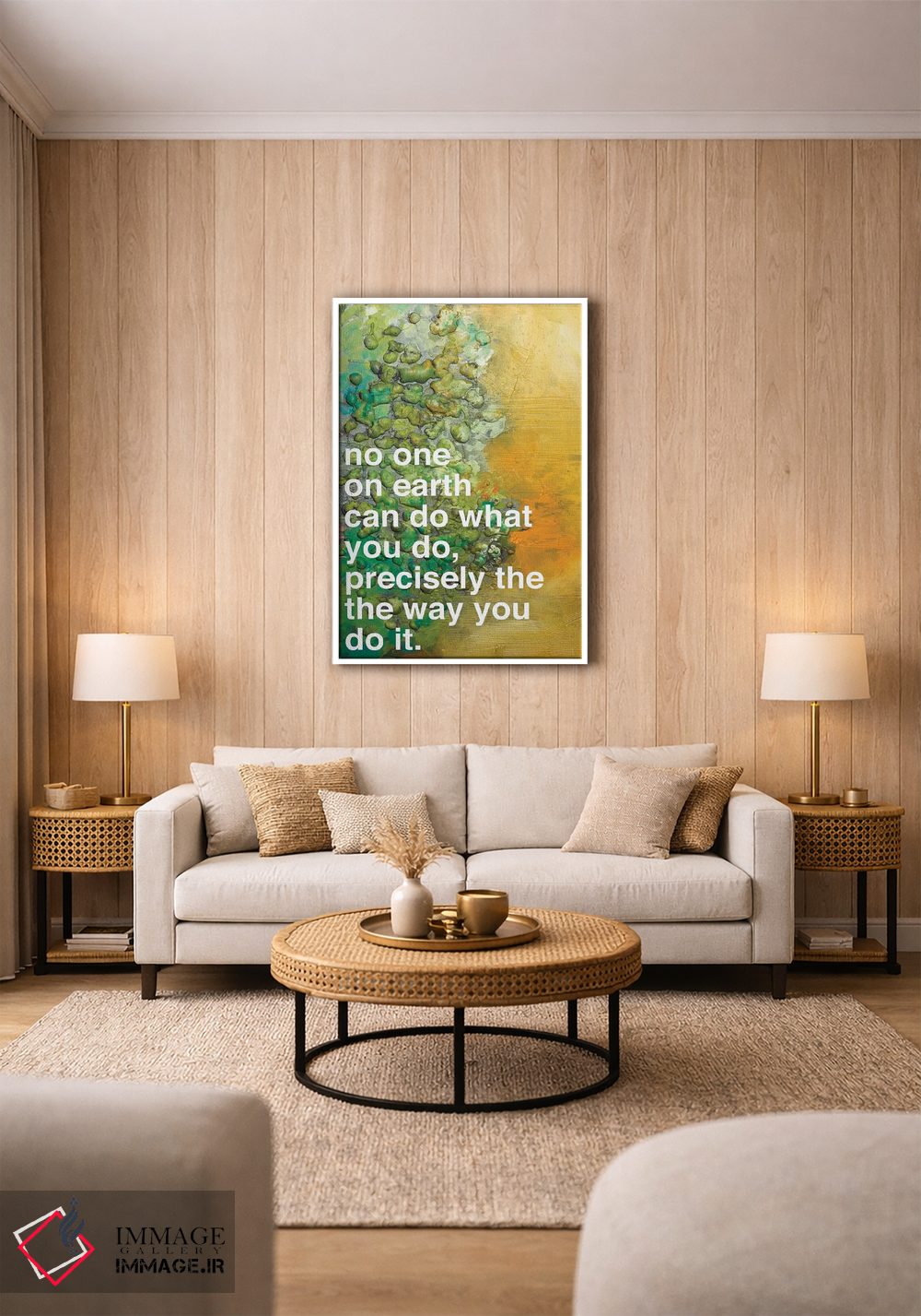 براساس پالت ترکیبی اثر، قاب تیک گرم (چوبی) پیشنهاد اول است و مشکی مات (فریم متوسط) مکمل. برای سفارشهای پروژهای با ابعاد و قابهای اختصاصی با ایماژ در تماس باشید.