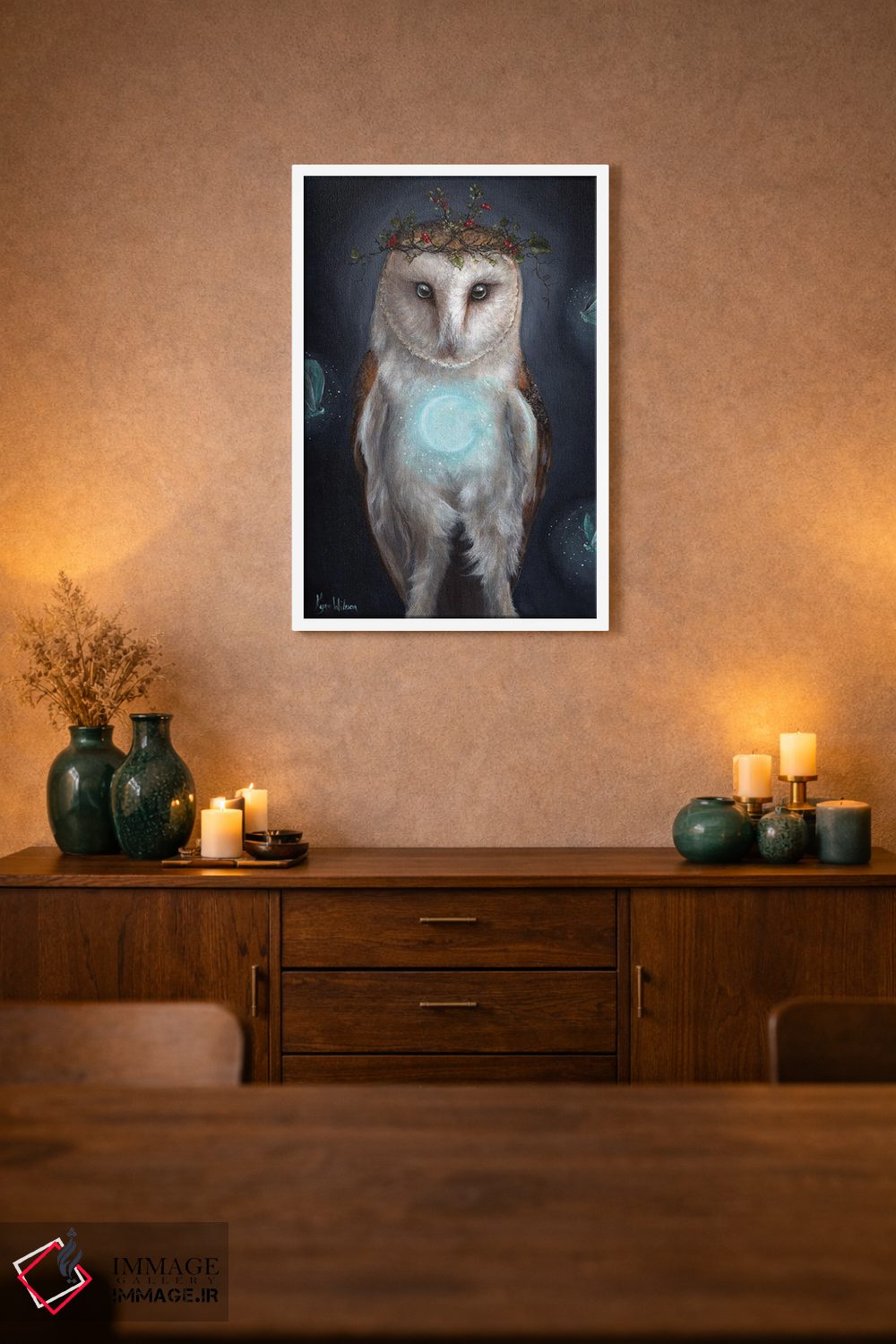 براساس پالت گرم اثر، قاب تیک گرم (چوبی) پیشنهاد اول است و مشکی مات (فریم متوسط) مکمل. برای سفارشهای پروژهای با ابعاد و قابهای اختصاصی با ایماژ در تماس باشید.