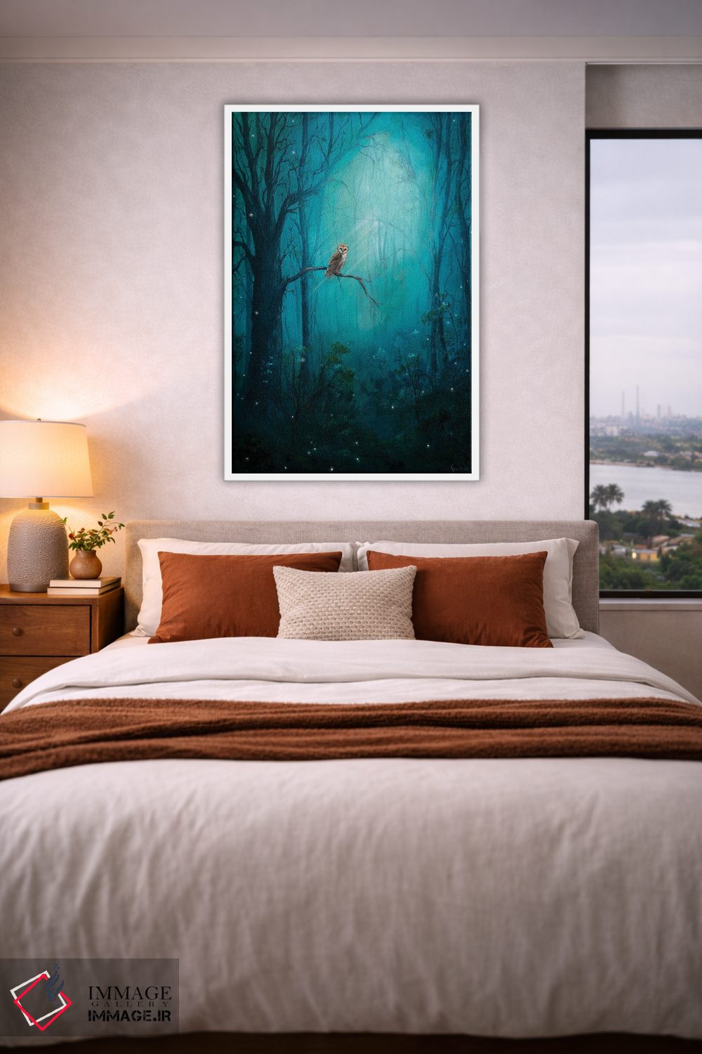 برای دکورهای صمیمی، «جغد جنگلی» اثرِ «کایرا ویلسون» بافت و جزئیات را طوری نشان میدهد که نگاه میماند؛ برای اتاق کودک (بدون لحن کودکانه) انتخابی خوشسلیقه است. هم فضا را گرم میکند، هم شلوغش نمیکند.