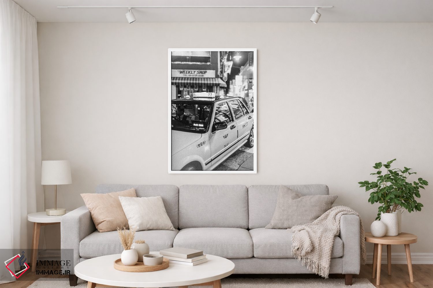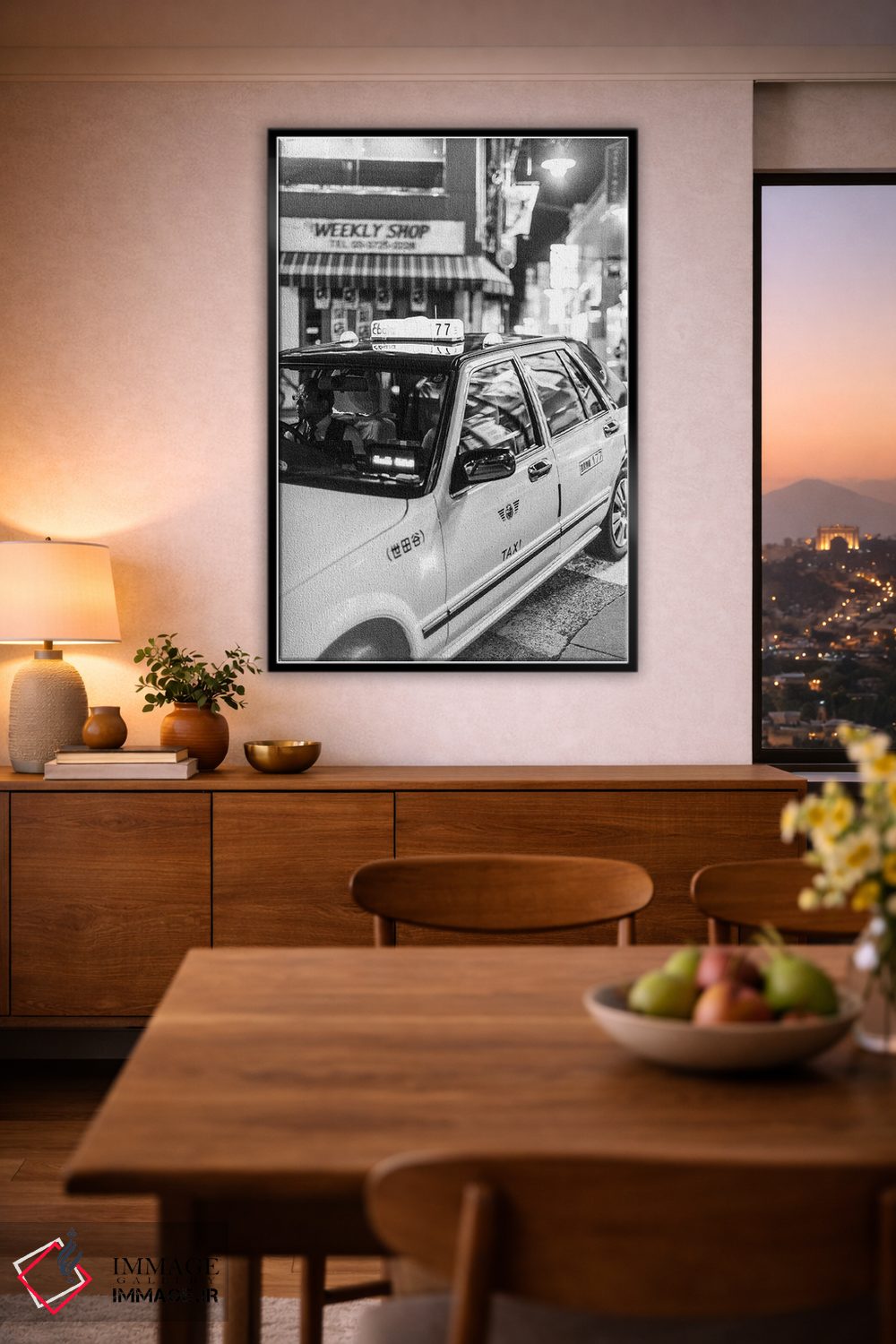 تابلو دکوراتیو تاکسی به سیاه و سفید اثر کنزو ایجیری