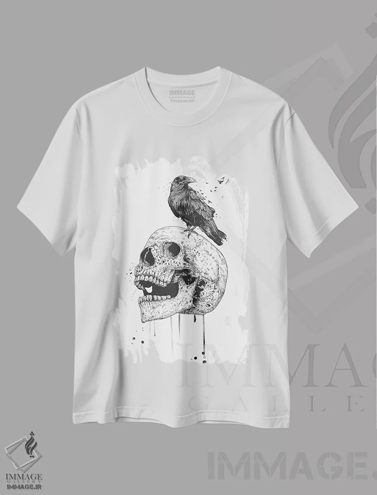 تیشرت مشکی طرح دار جمجمه جدید، هنر تزئینی سیاه و سفید اثر بالازس شولتی | immage.ir