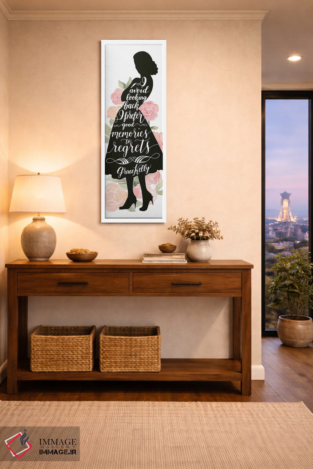 تابلو دکوراتیو زن شاخص ۴ اثر گریس پاپ - نمای قاب‌دار سفید
