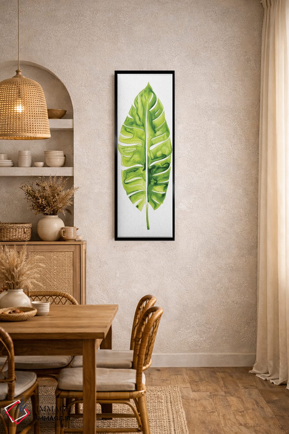 در «مطالعه برگ موز I» اثرِ «گریس پاپ»، گلها و گیاهان برای دیوارهای ساده، یک لطافتِ دقیق میسازد؛ برای راهروهای مینیمال انتخابی خوشسلیقه است. همیشه بهروز میماند و با فصلها خوب کنار میآید.