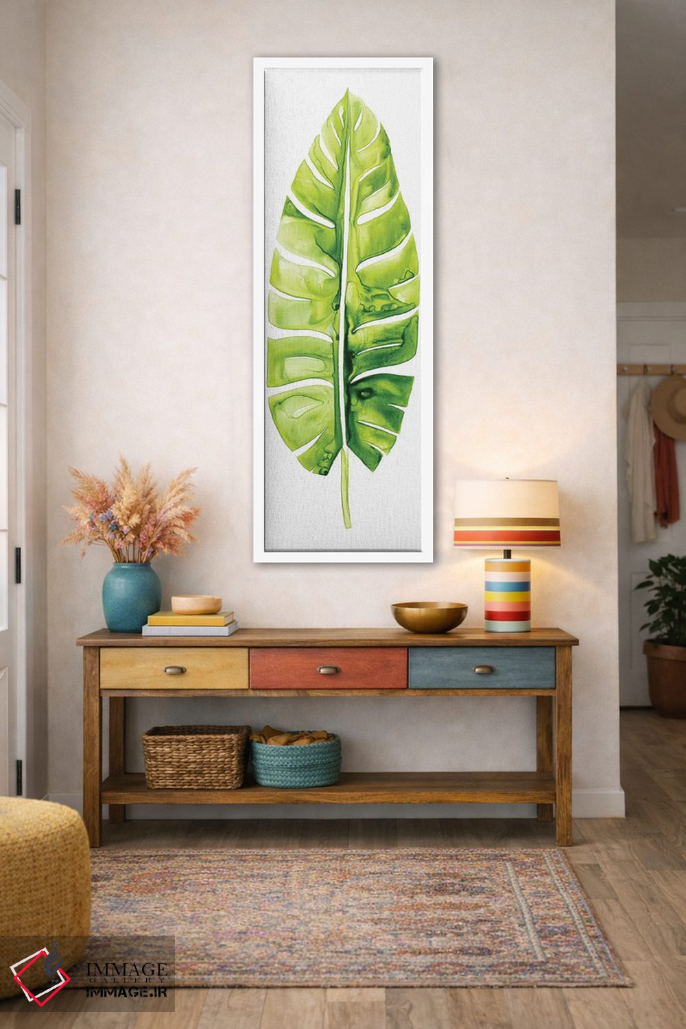 «مطالعه برگ موز II» اثرِ «گریس پاپ» مثل یک نفس تازه است؛ حس فصل را آرام وارد فضا میکند؛ برای خانههایی با نور طبیعی انتخابی خوشسلیقه است. فضا را شلوغ نمیکند؛ فقط لطیفترش میکند.