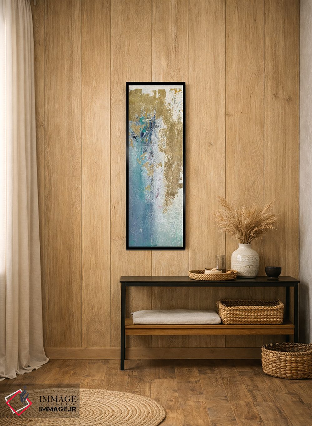 براساس پالت ترکیبی اثر، قاب تیک گرم (چوبی) پیشنهاد اول است و مشکی مات (فریم متوسط) مکمل. برای سفارشهای پروژهای با ابعاد و قابهای اختصاصی با ایماژ در تماس باشید.