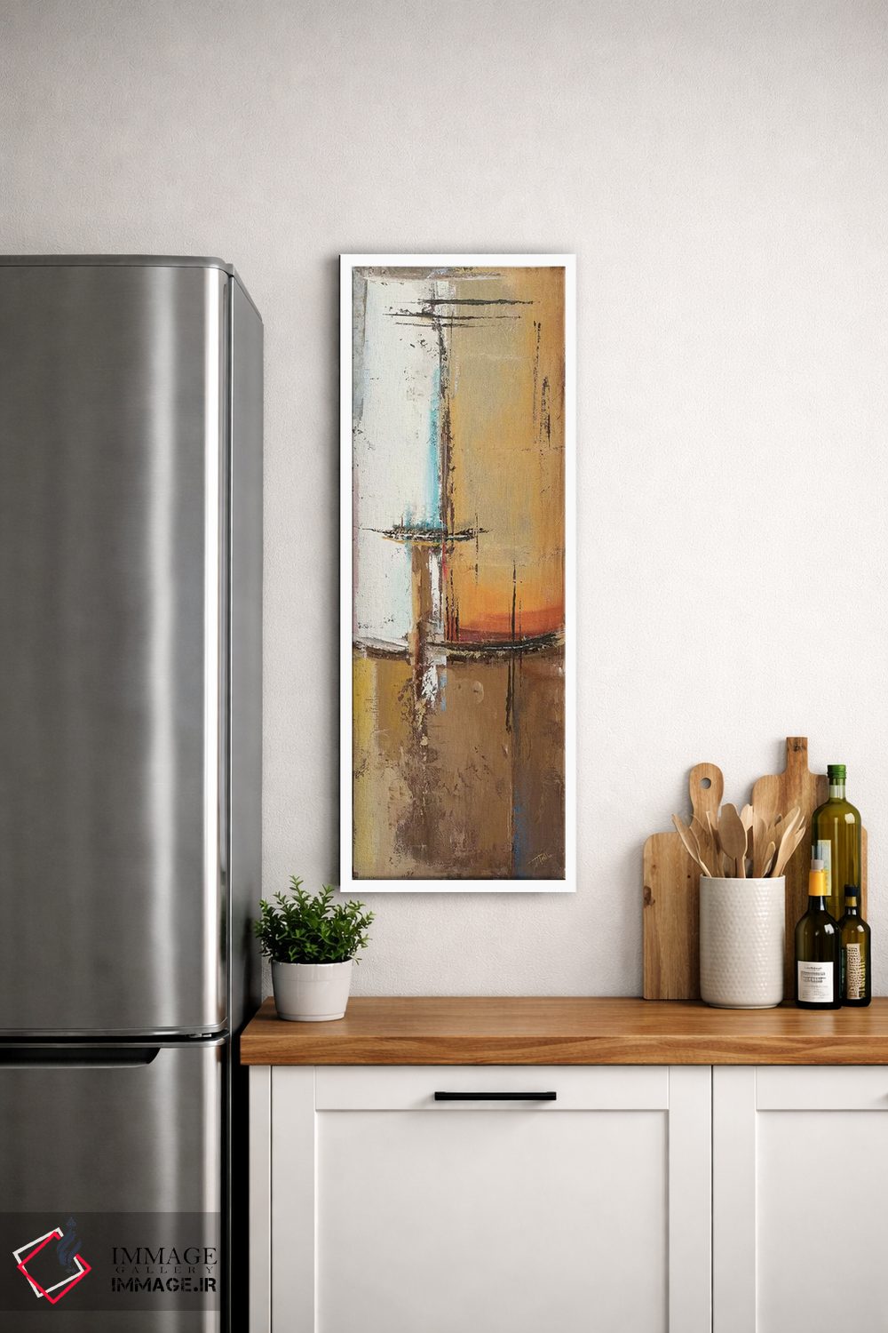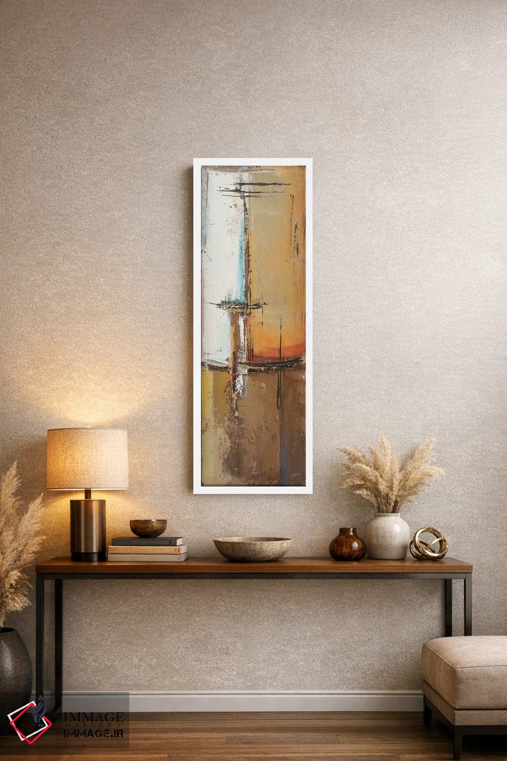 براساس پالت گرم اثر، قاب تیک گرم (چوبی) پیشنهاد اول است و مشکی مات (فریم متوسط) مکمل. برای سفارشهای پروژهای با ابعاد و قابهای اختصاصی با ایماژ در تماس باشید.