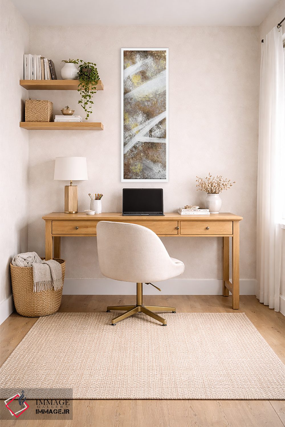 کرم میتواند یک اکسنتِ کوچک اما موثر باشد؛ یک تابلو کوچک مکمل را با کرم دوباره بیاورید تا حس طراحی فضا کاملتر شود. انتخاب قاب هم میتواند این اکسنت را تقویت کند.