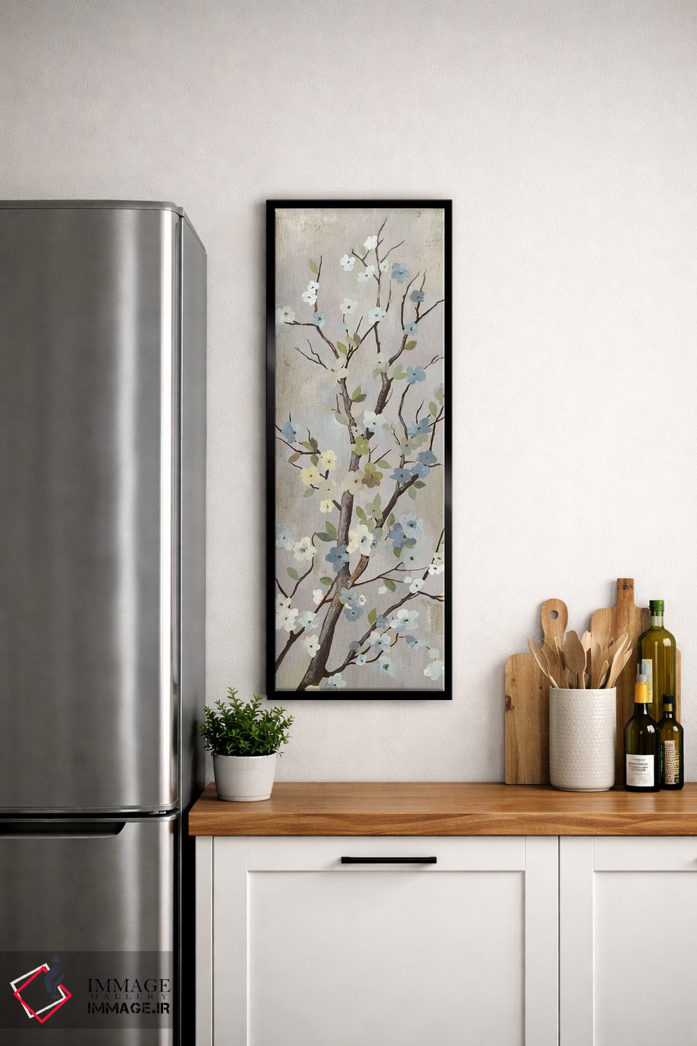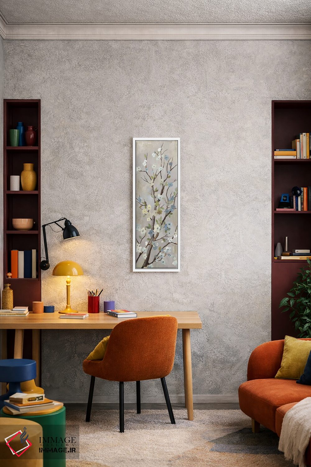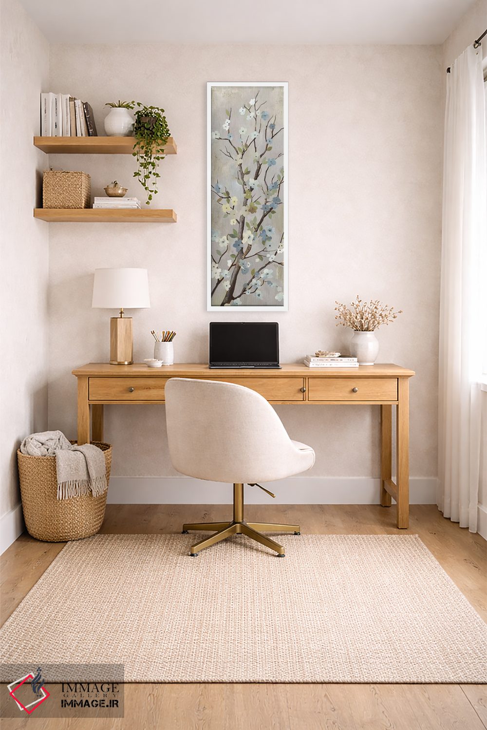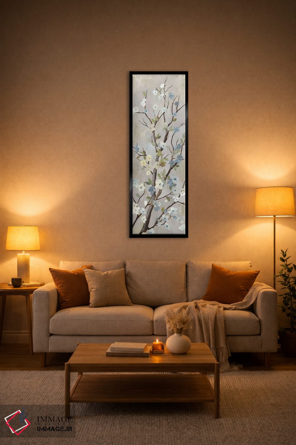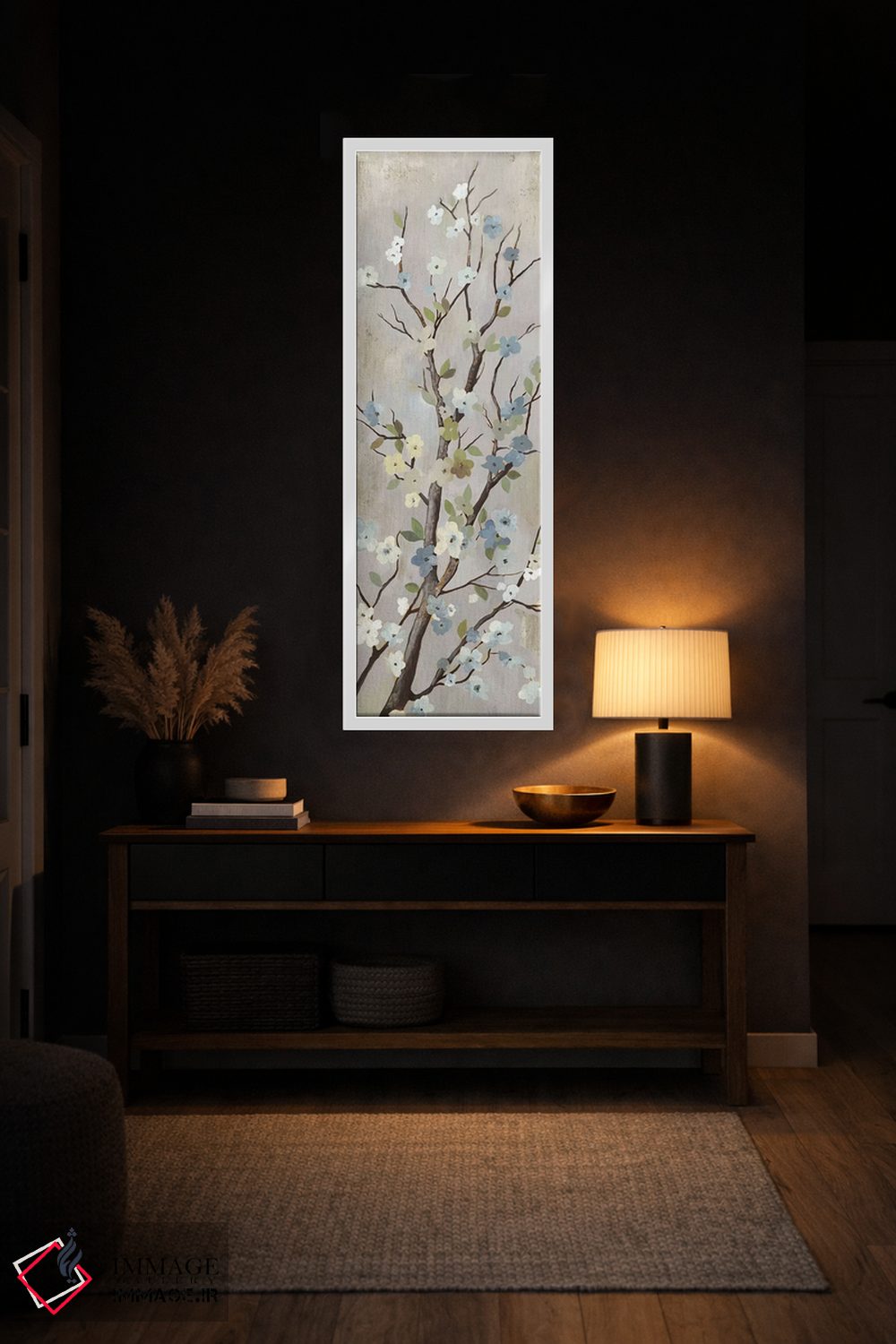 براساس پالت خنثی اثر، قاب بلوط روشن (چوبی) پیشنهاد اول است و استخوانی ملایم مکمل. برای سفارشهای پروژهای با ابعاد و قابهای اختصاصی با ایماژ در تماس باشید.