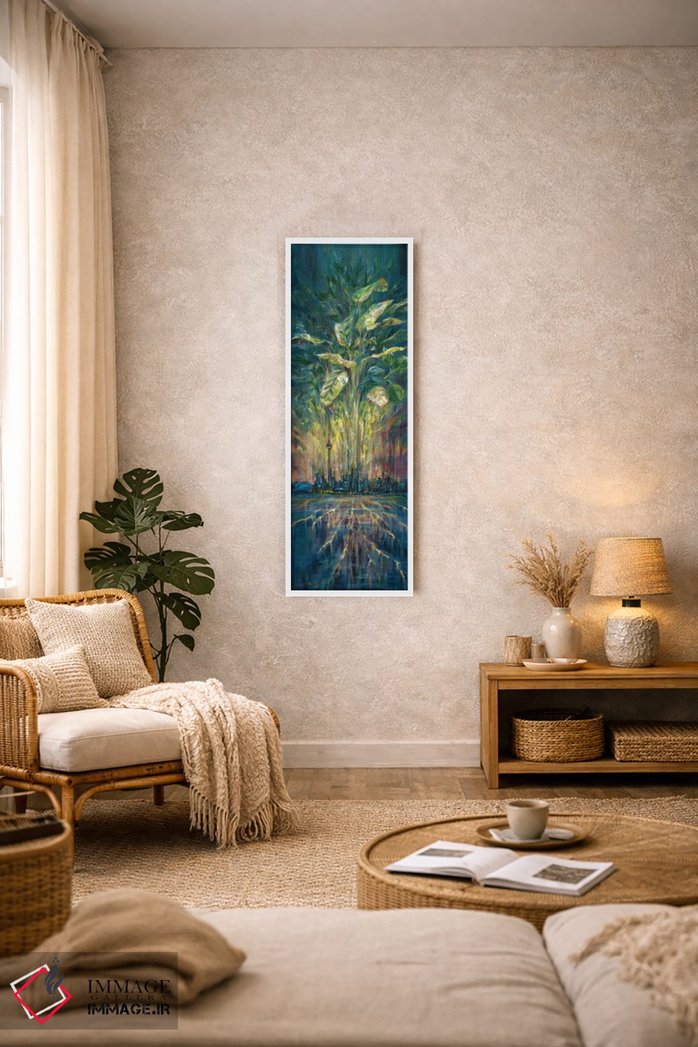 بوم گالری ایماژ طوری طراحی شده که اثر روی دیوار «پرداختشده» و حرفهای دیده شود—نه پرزرقوبرقِ بیپایه؛ بلکه دقیق و خوشپرداخت. بافت ظریف کنواس کمک میکند حس اثر هنری را در نگاه نزدیک نگه میدارد و همین «پرداخت» تفاوت را میسازد. با قابپذیری، قاب مناسب مرز بصری تمیزتری به اثر میدهد و در چیدمانهای مدرن و مینیمال خیلی خوب مینشیند. این کیفیت برای دکورهای دقیقتر و پروژههای حرفهای خودش را بهتر نشان میدهد؛ اگر محیط مینیمال است، همین پرداخت تمیز کافی است.
