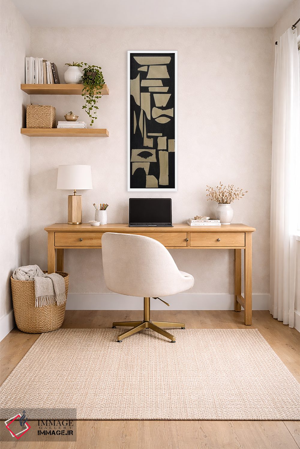 بوم گالری ایماژ طوری طراحی شده که اثر روی دیوار «پرداختشده» و حرفهای دیده شود—نه پرزرقوبرقِ بیپایه؛ بلکه دقیق و خوشپرداخت. بافت ظریف کنواس کمک میکند حس اثر هنری را در نگاه نزدیک نگه میدارد. در قابپذیری، میتواند اثر را نقطهٔ کانونی فضا کند بهخصوص وقتی نور موضعی ملایم داشته باشید. حاصل کار، یک تابلو خوشنشین است که هم از دور اثرگذار است و هم از نزدیک خوشخوان؛ در فضاهای کاری، این نظم بصری خیلی به چشم میآید.