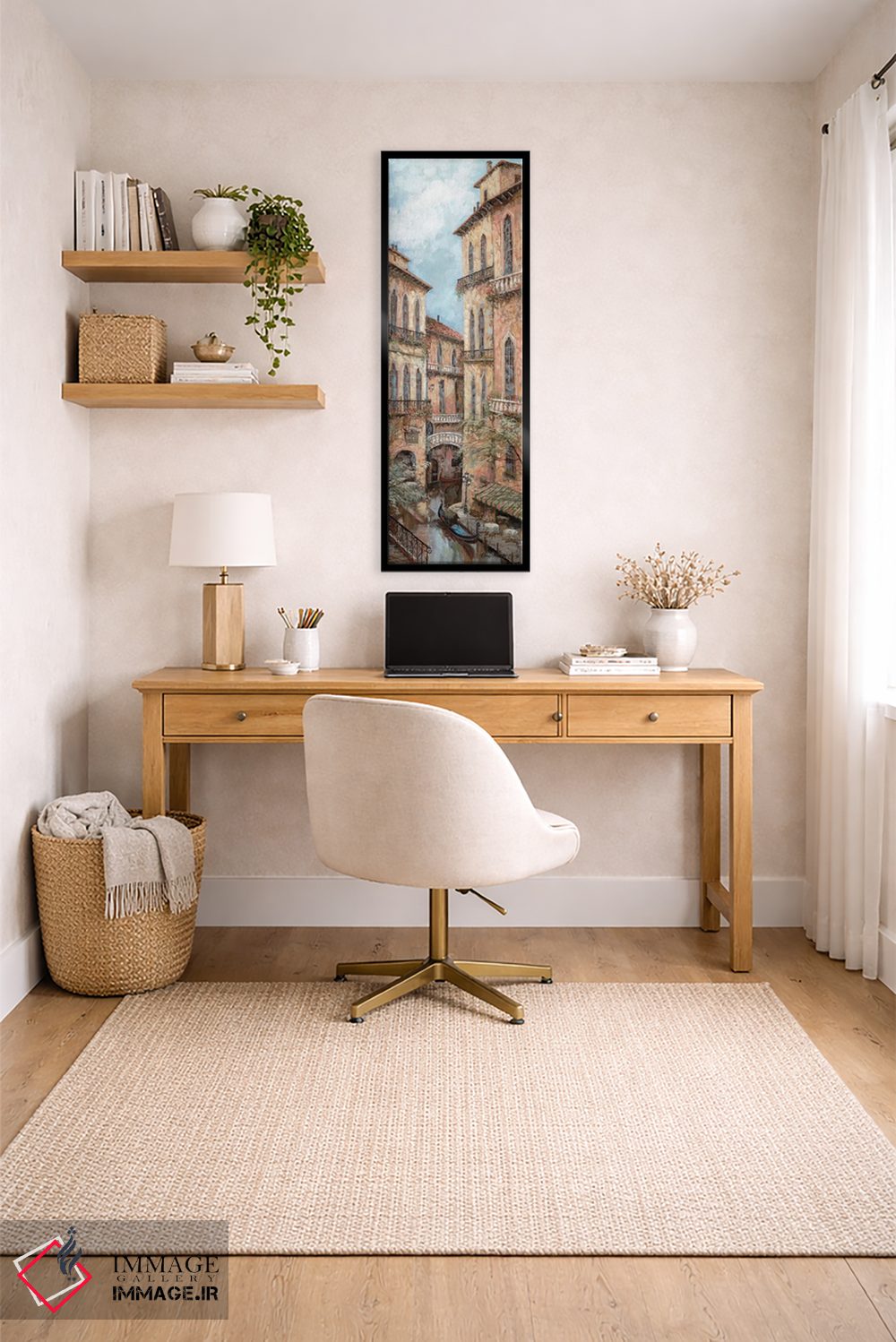 «تعطیلات در ونیز دو» اثرِ «روئن منینگ» با رویکرد معاصر، برای دفتر کار و خانههای مدرن انتخابی مناسب است؛ موضوعِ این اثر هم هویت میدهد.