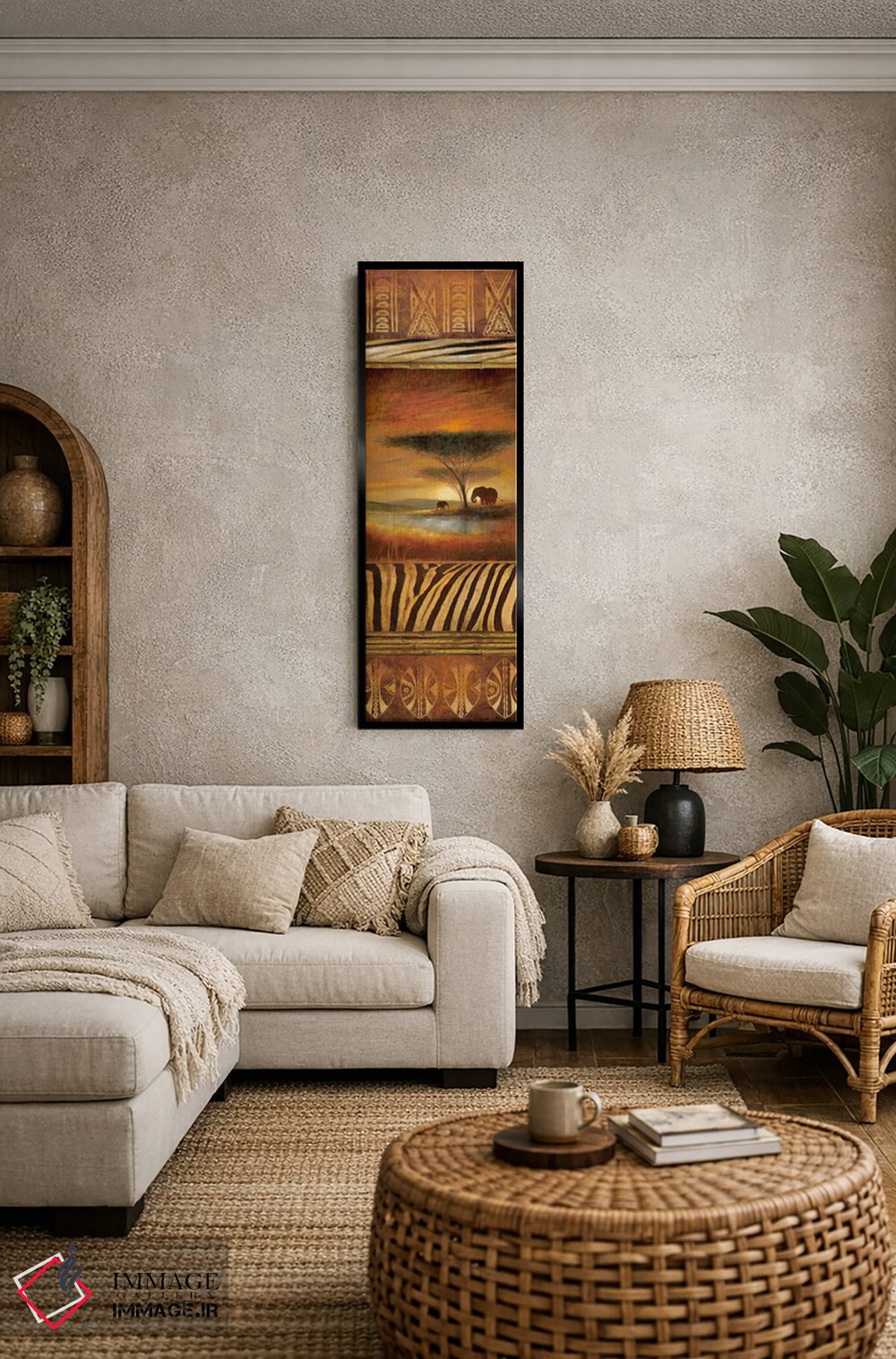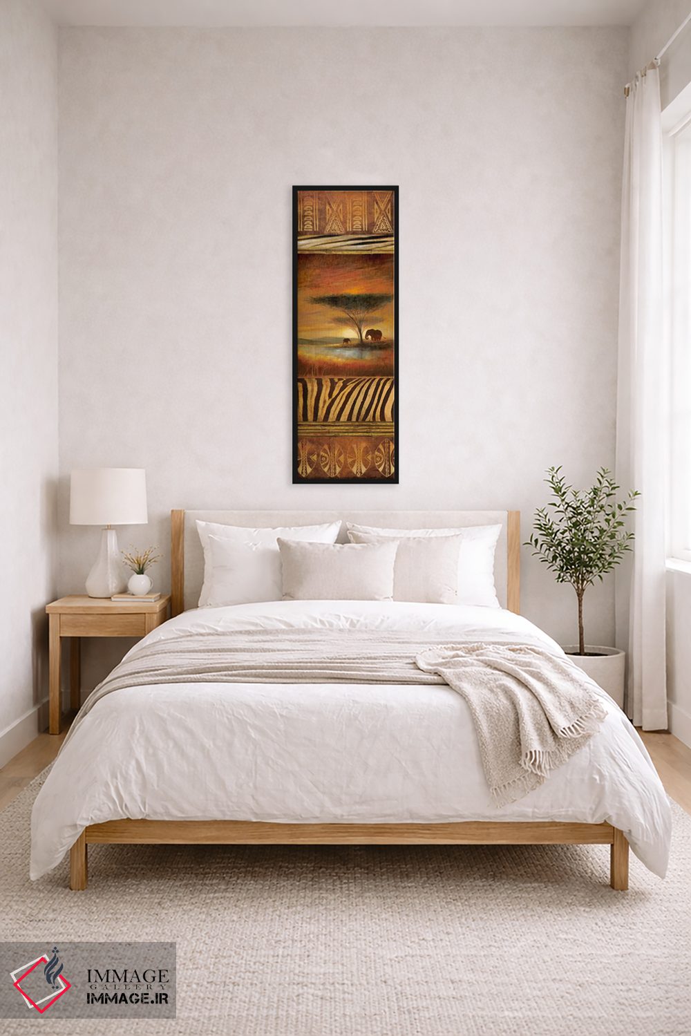 براساس پالت گرم اثر، قاب تیک گرم (چوبی) پیشنهاد اول است و مشکی مات (فریم متوسط) مکمل. برای سفارشهای پروژهای با ابعاد و قابهای اختصاصی با ایماژ در تماس باشید.